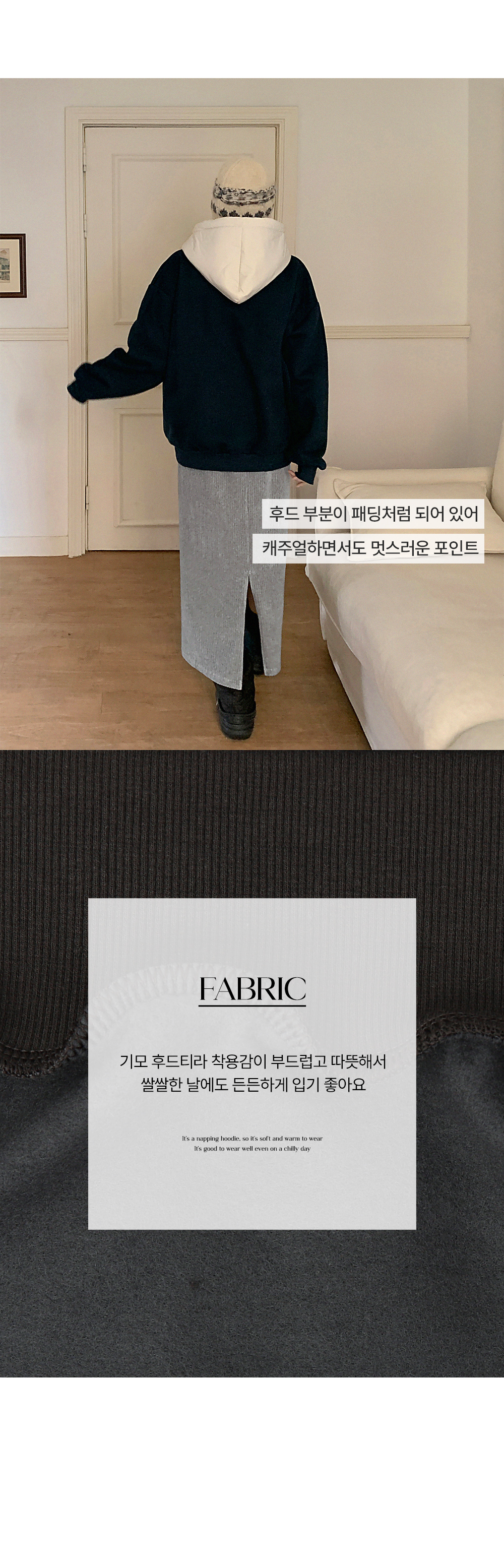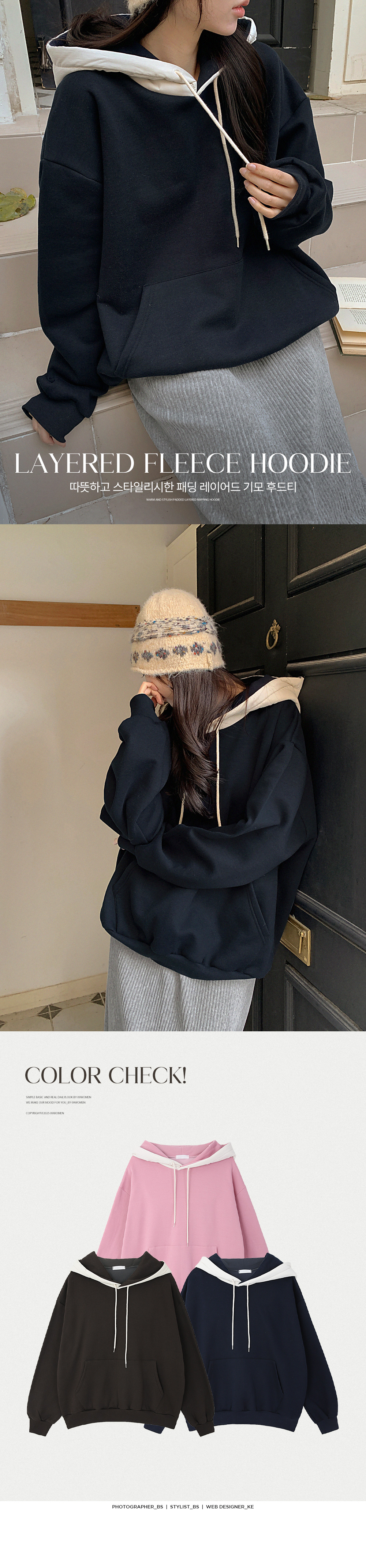 패딩 레이어드 기모 후드티예요.