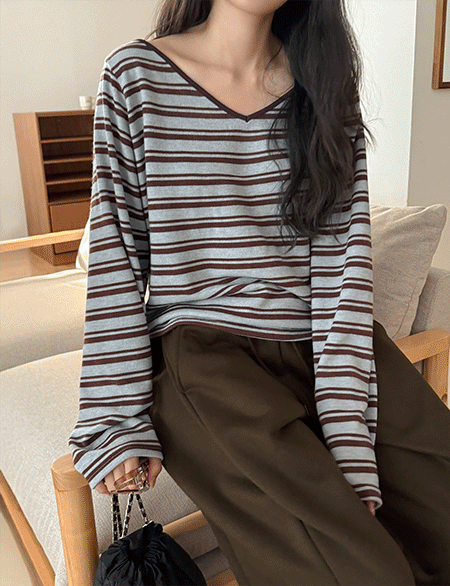 • 라셀 ストライプ Vネック ニット ティーシャツ 85315