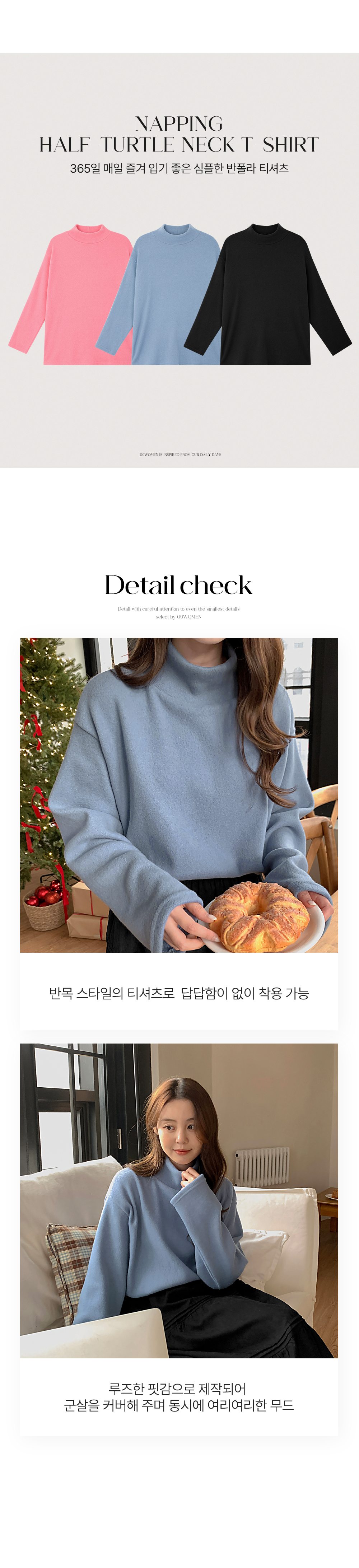 반목 스타일의 티셔츠로 답답함이 없이