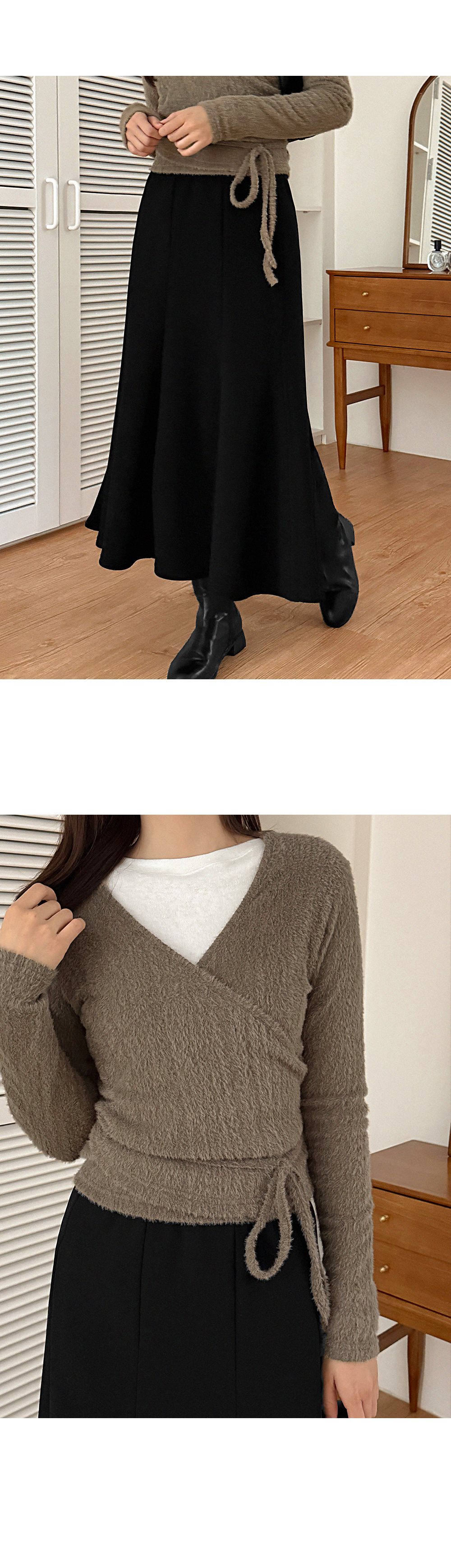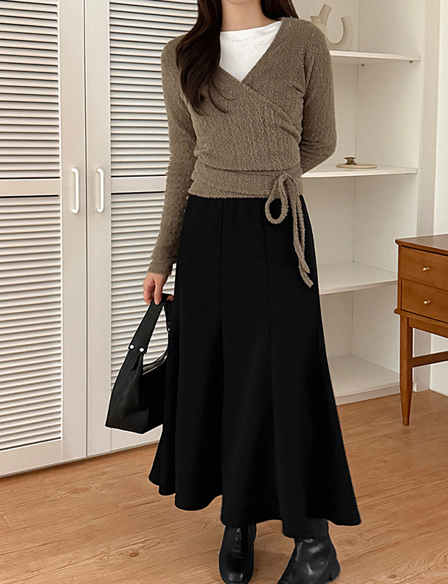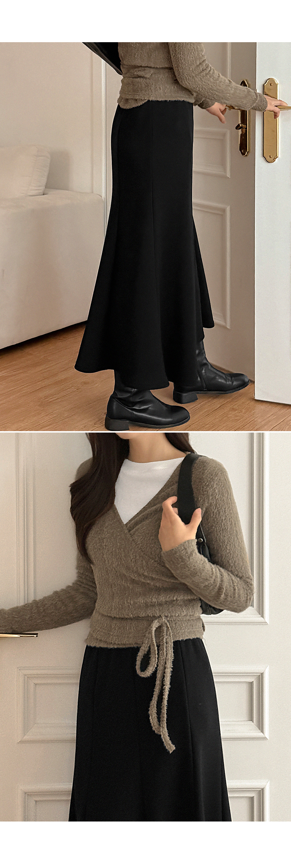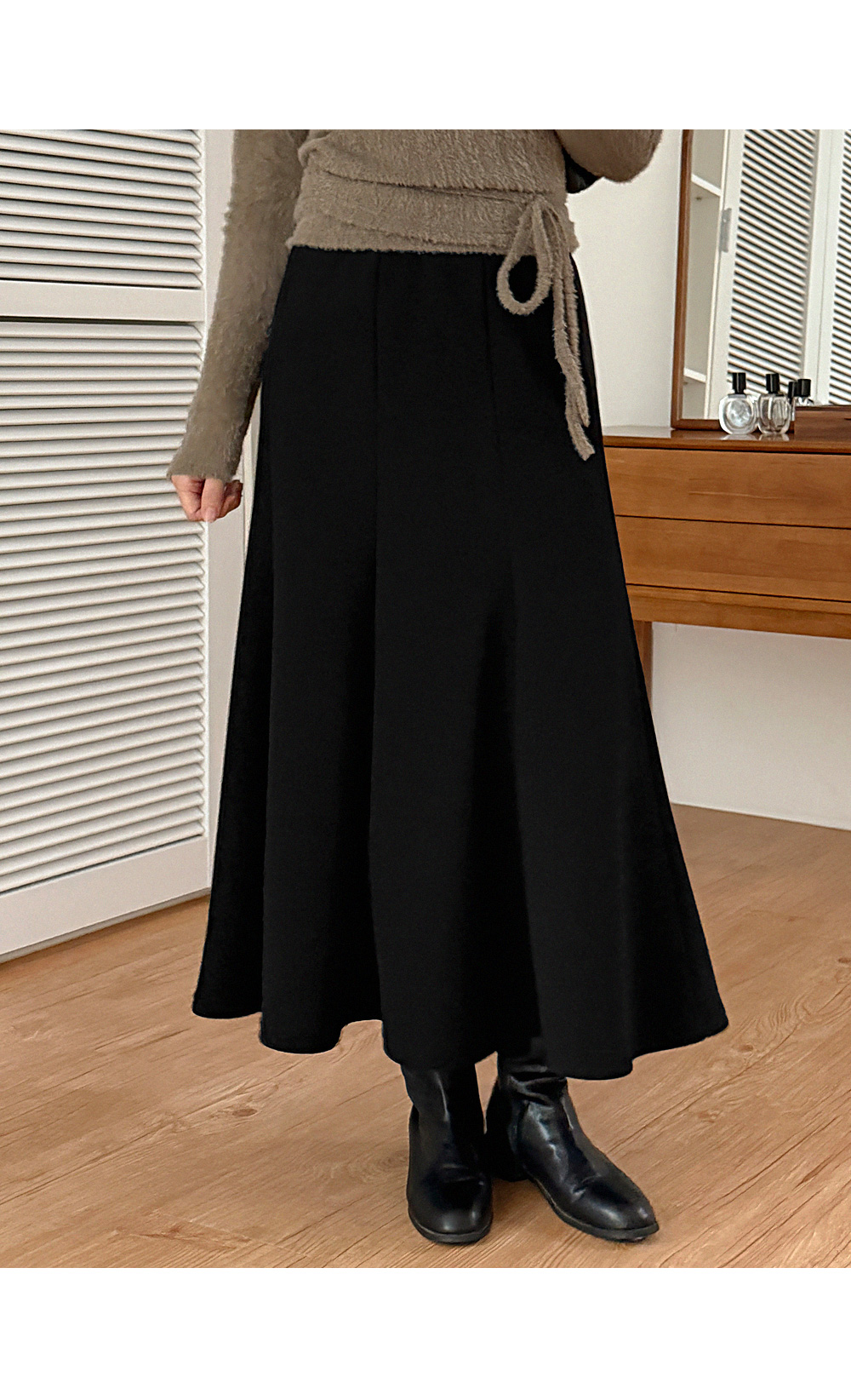• 멜트닝 ゴム 절개 머메이드 起毛 ロング スカート 85431