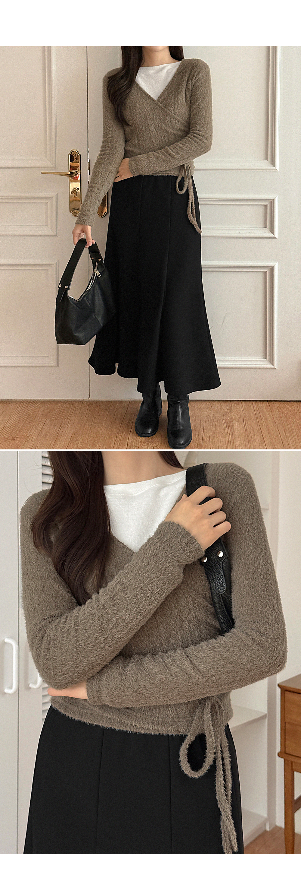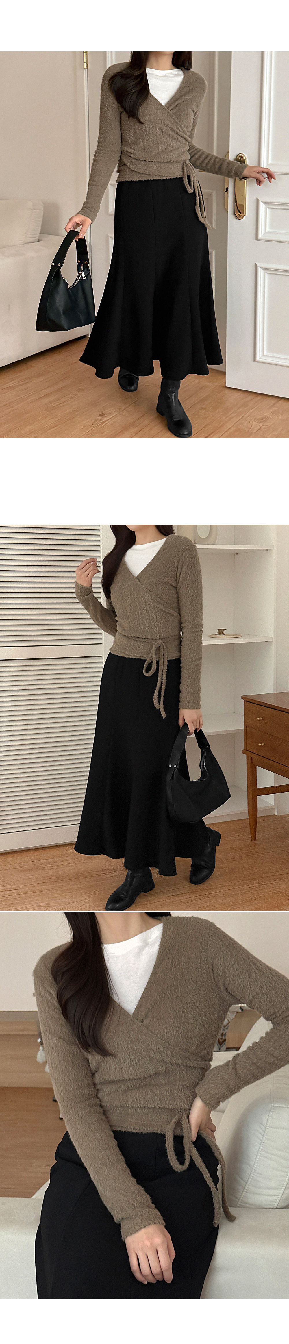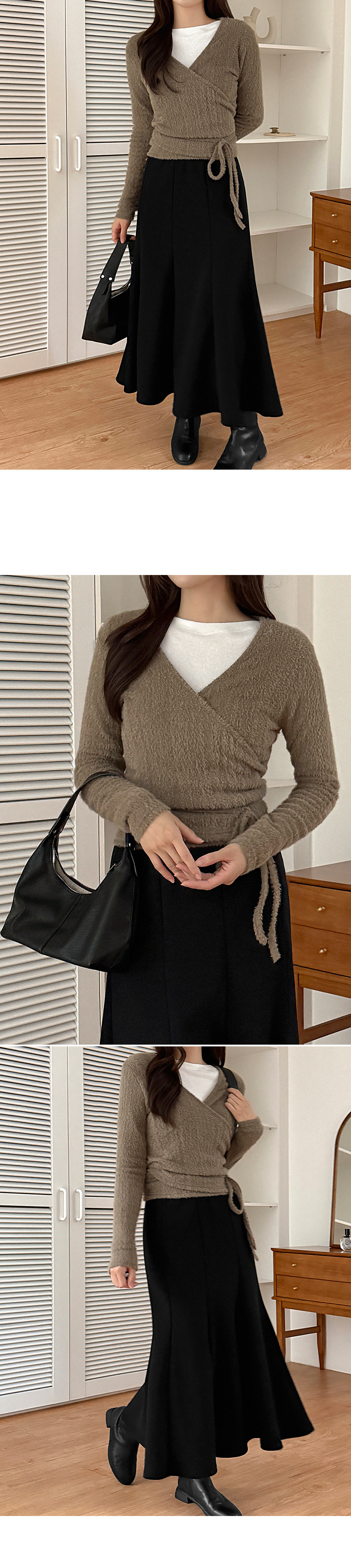 • 멜트닝 ゴム 절개 머메이드 起毛 ロング スカート 85431