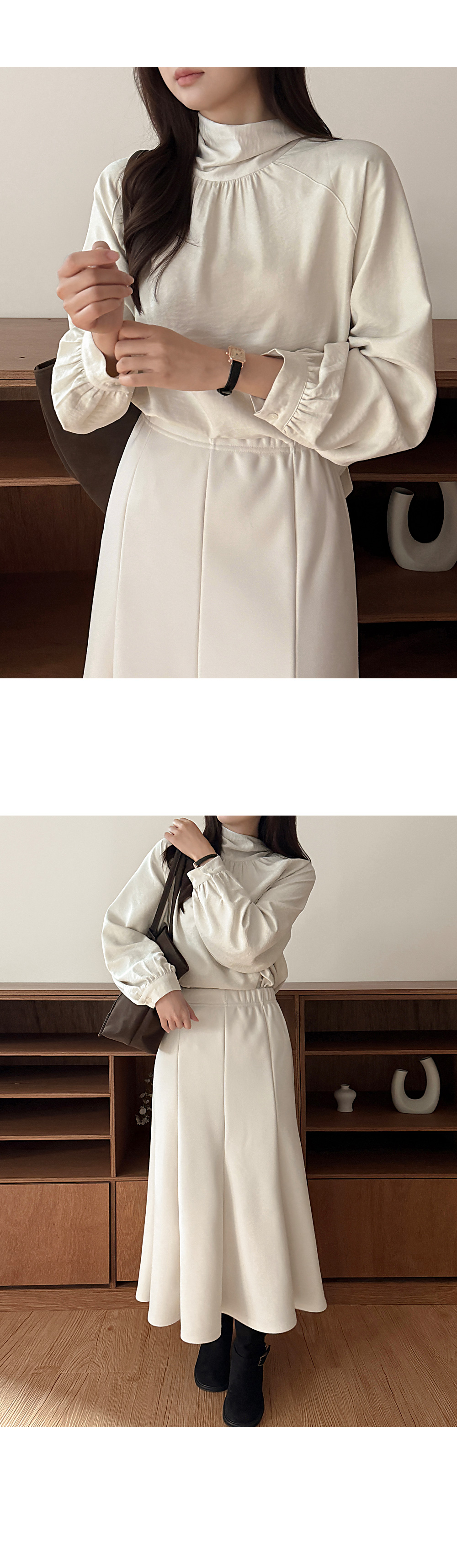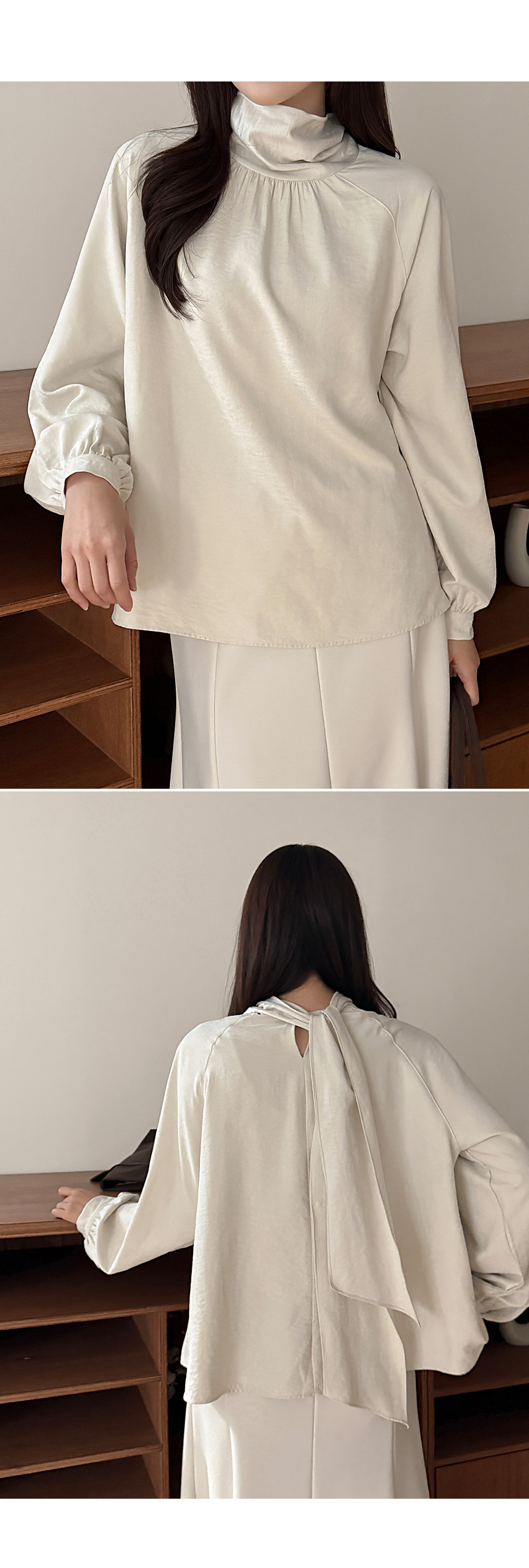 자연스러운 핏의 하이넥 라인이