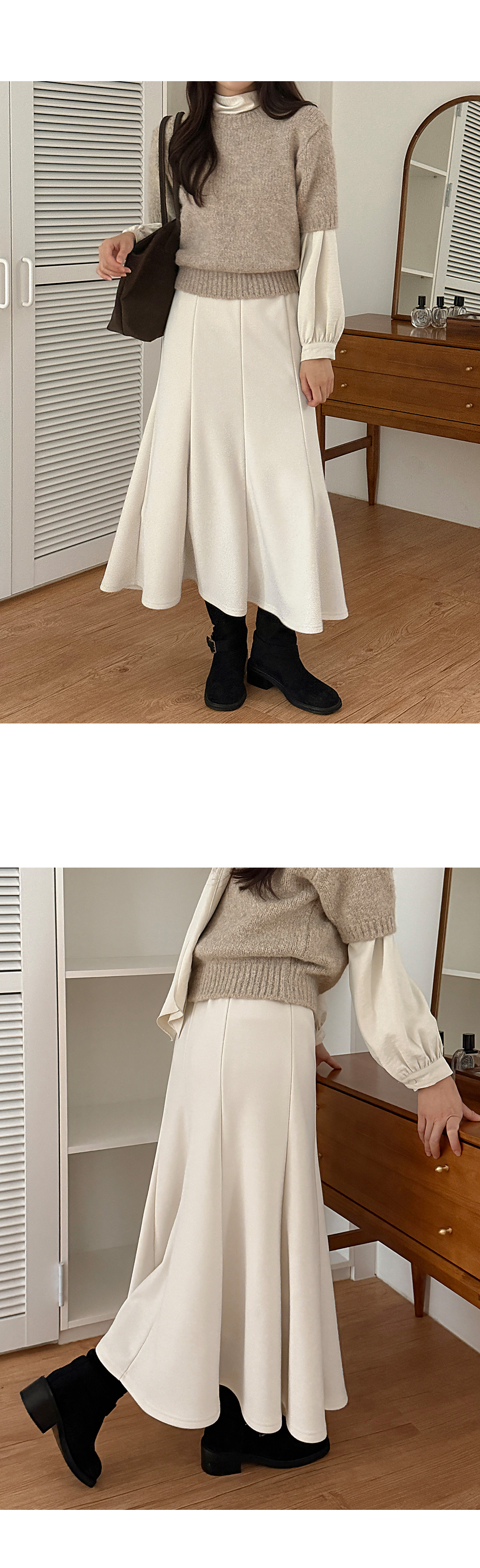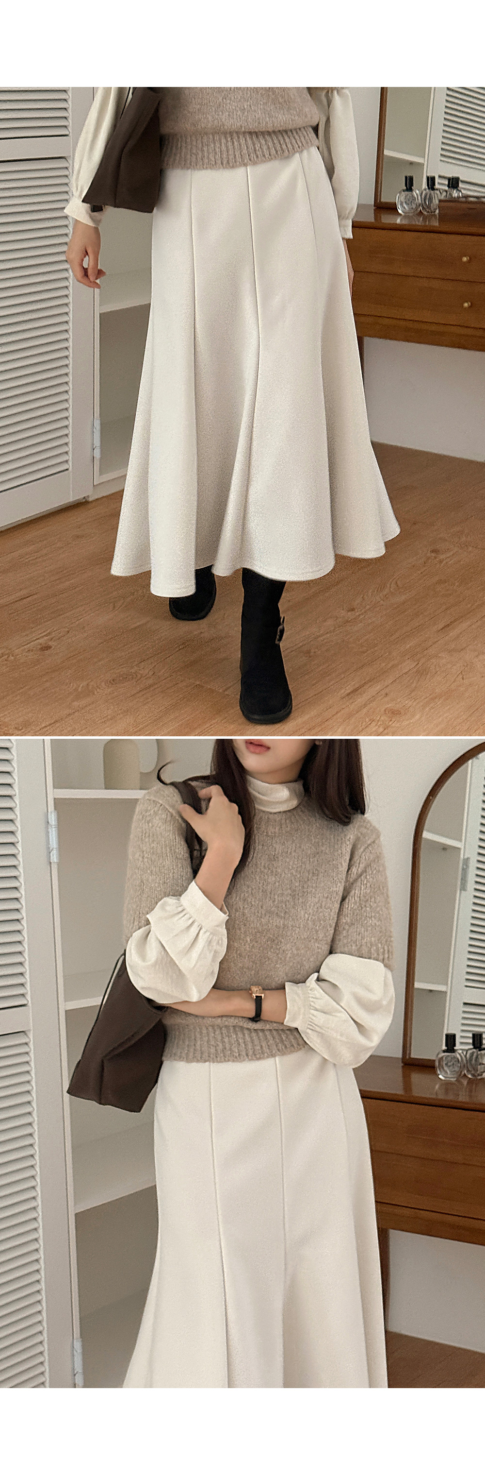 • 멜트닝 ゴム 절개 머메이드 起毛 ロング スカート 85431
