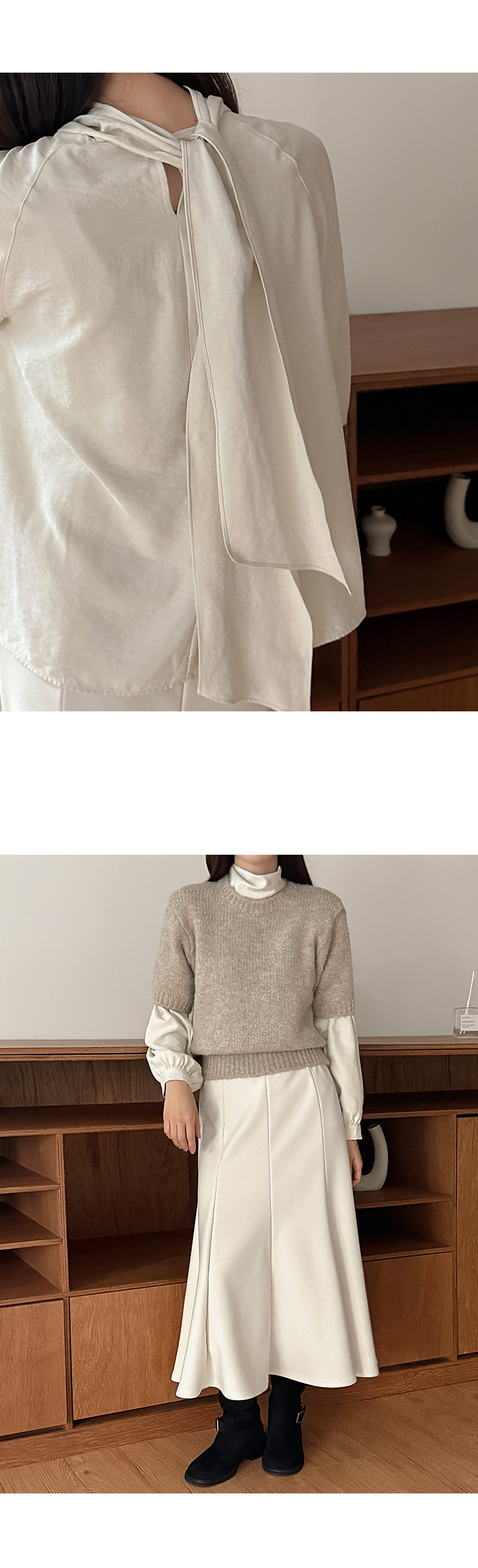 우아하고 로맨틱한 무드의 타이 블라우스