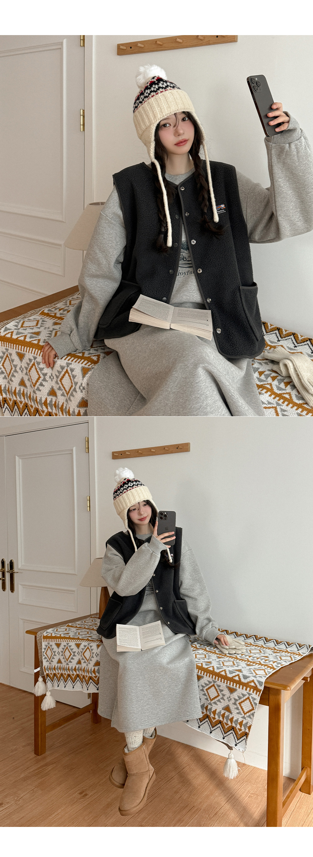 폭테일 ルーズフィット 起毛 ロング ワンピース 85512