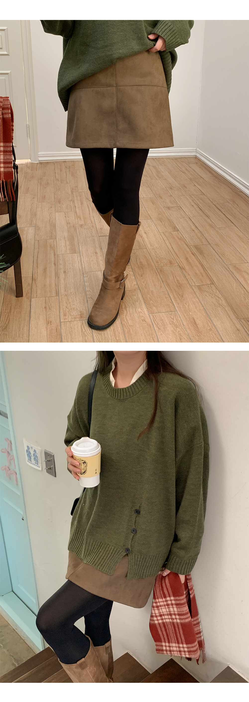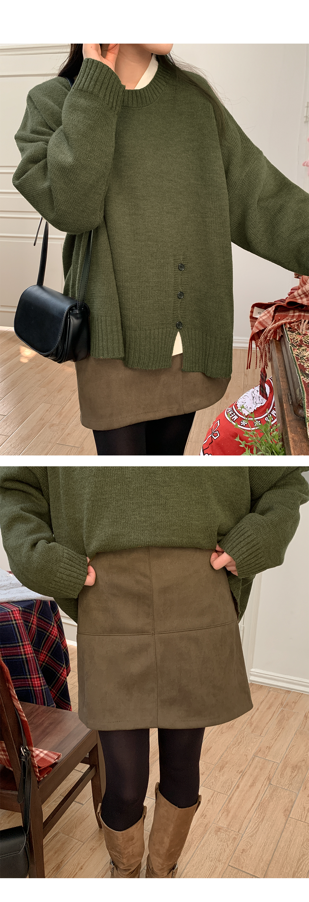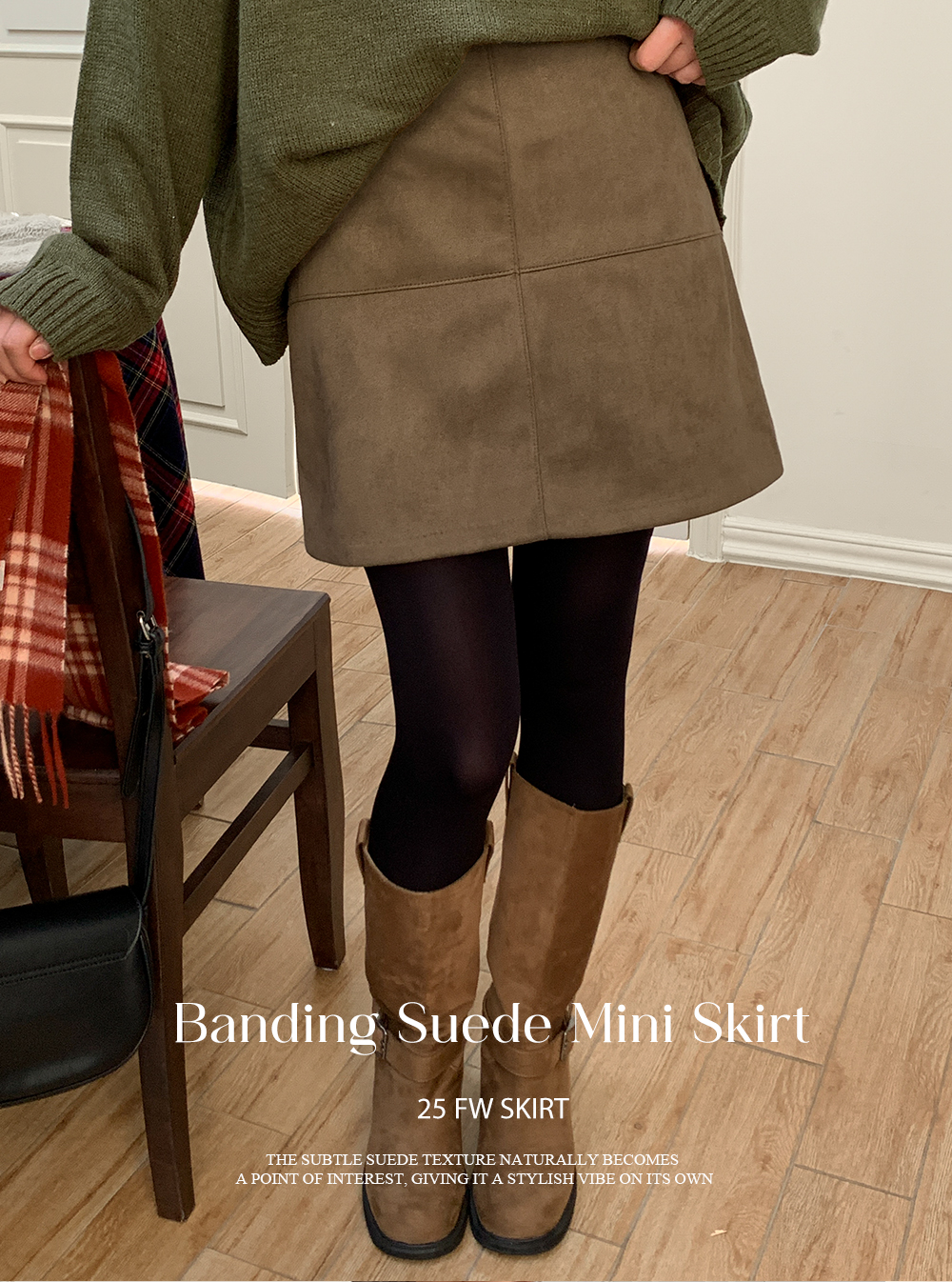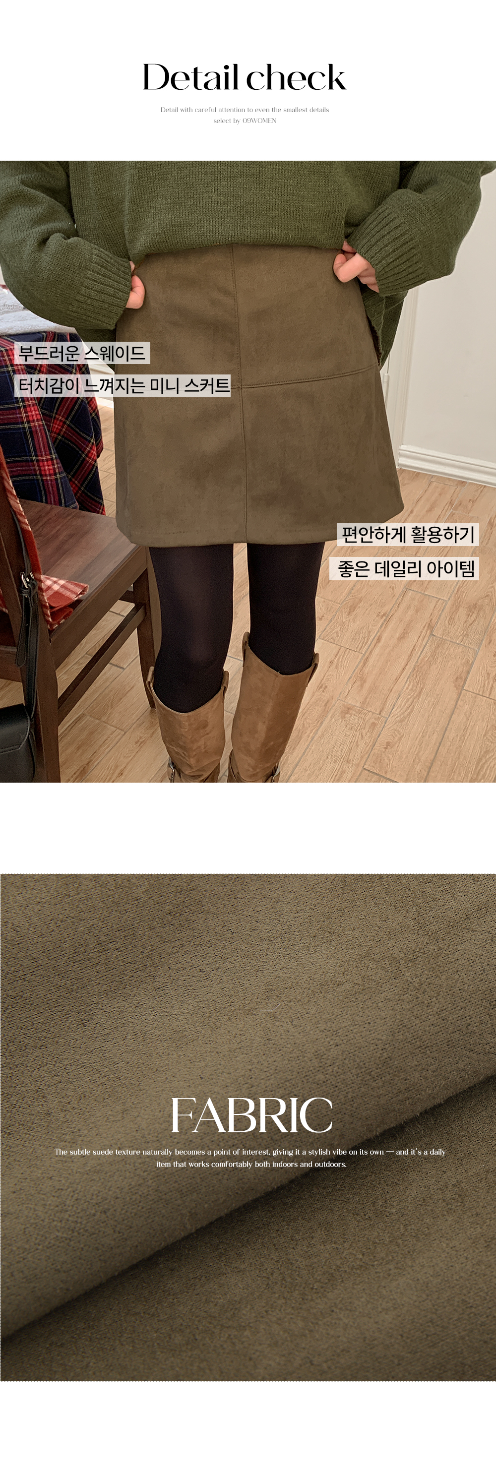 부드러운 스웨이드 터치감이 느껴지는 포근한 미니스커트