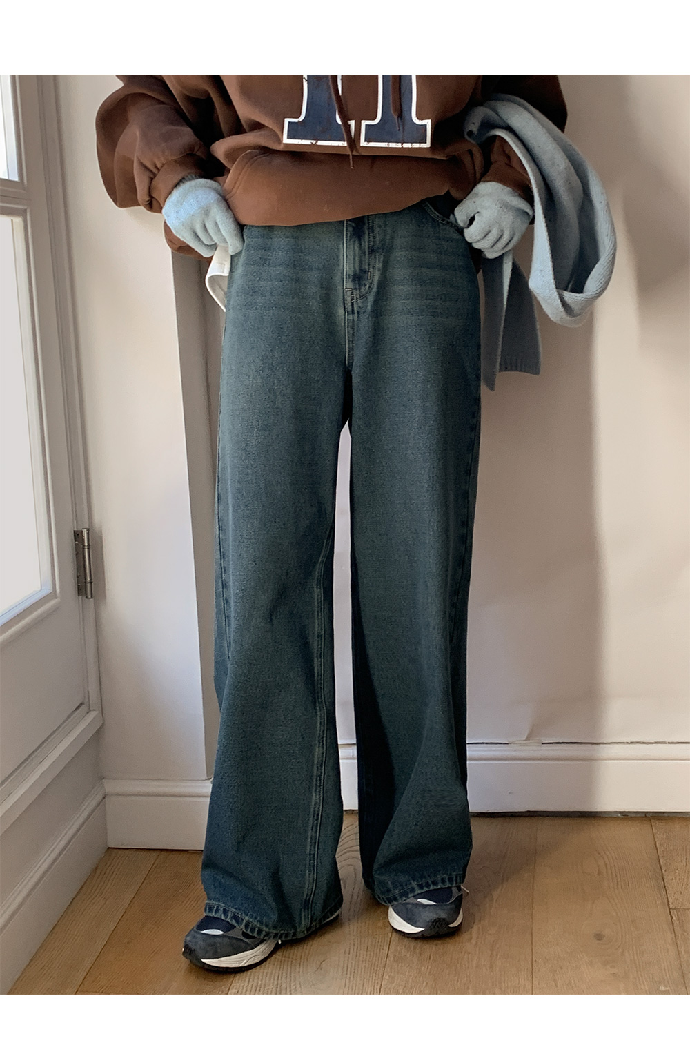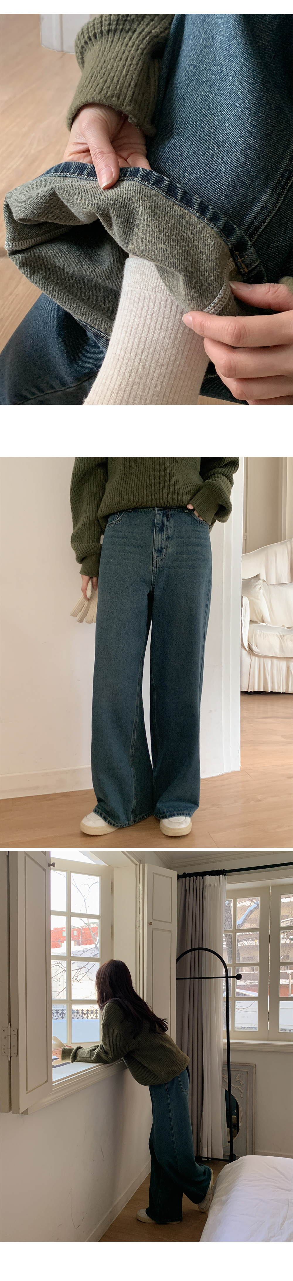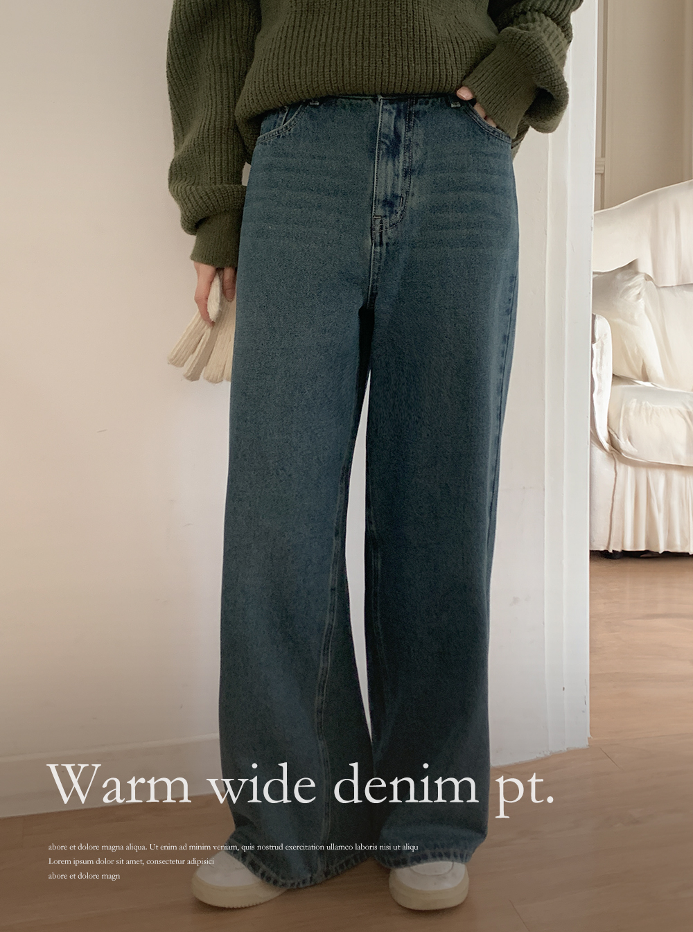 부드러운 기모 안감으로 포근한 와이드 데님 팬츠