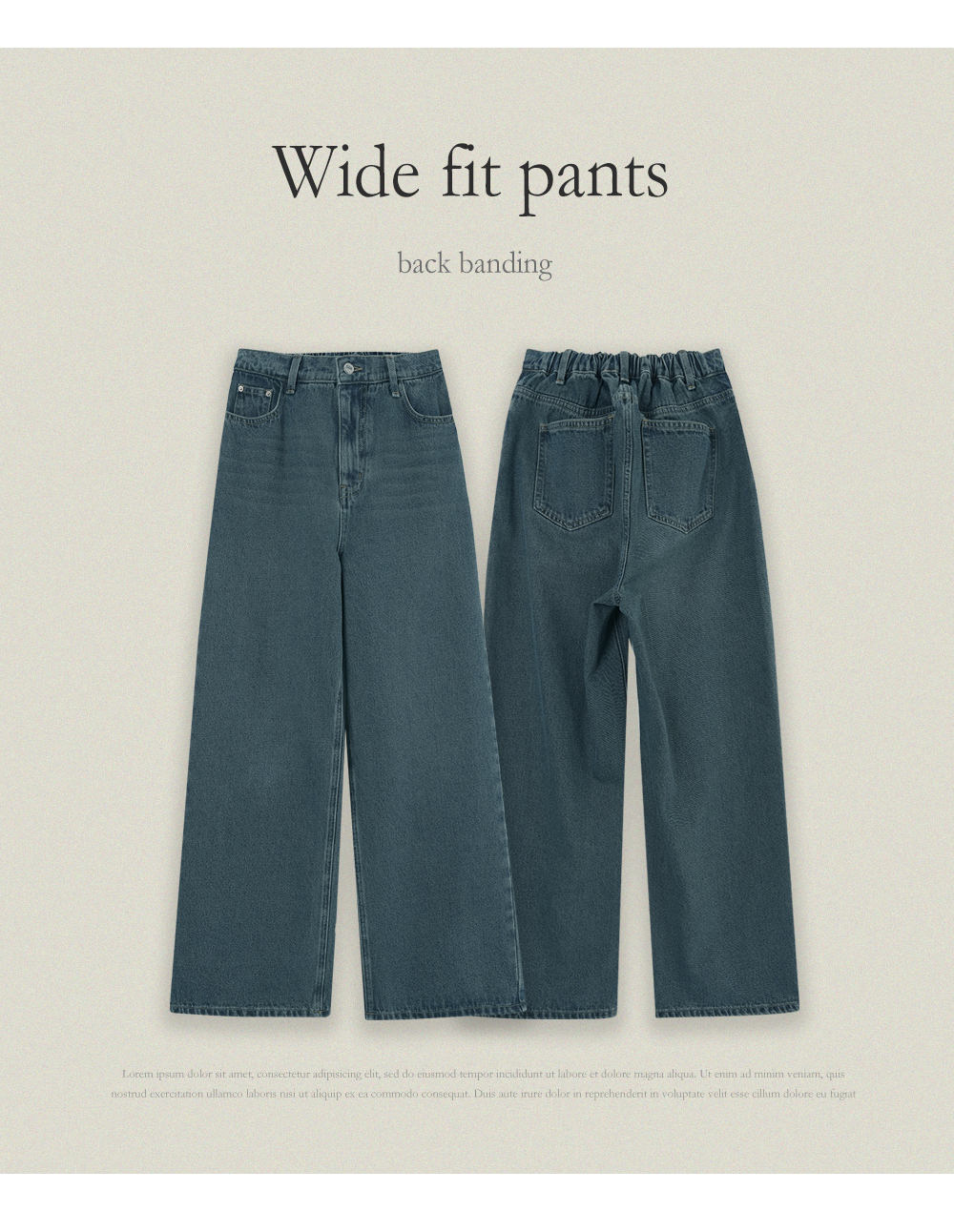 뒷밴딩 기모 와이드 데님 팬츠예요.