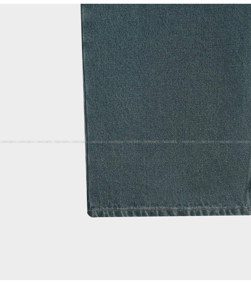 캐주얼한 무드의 차분한 빈티지 블루 팬츠로