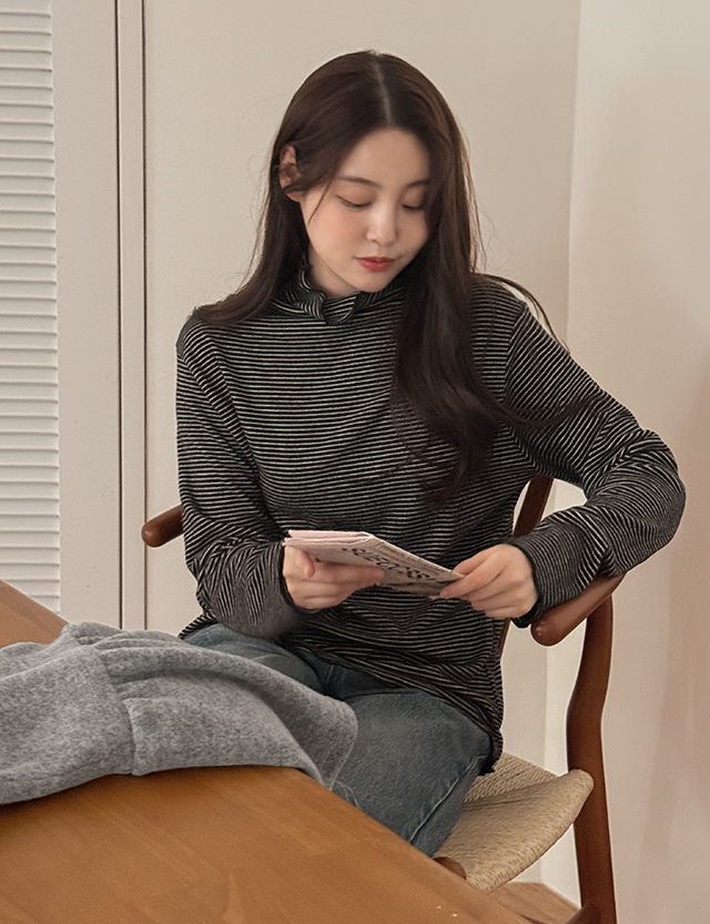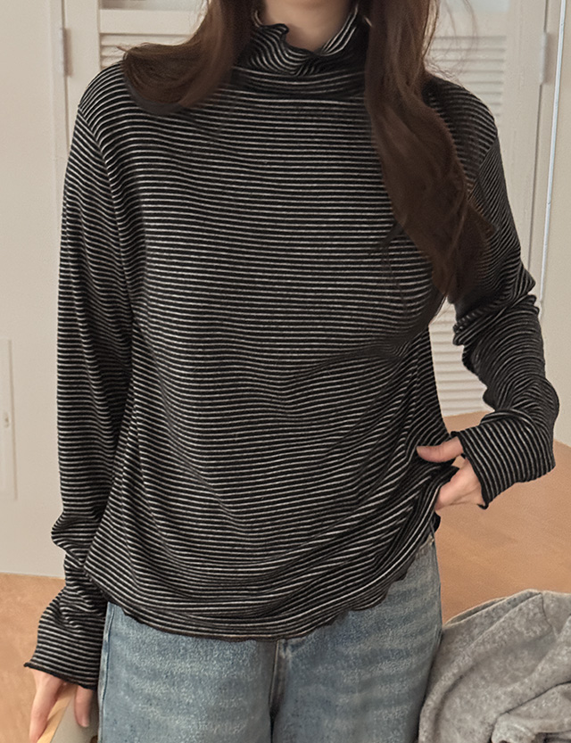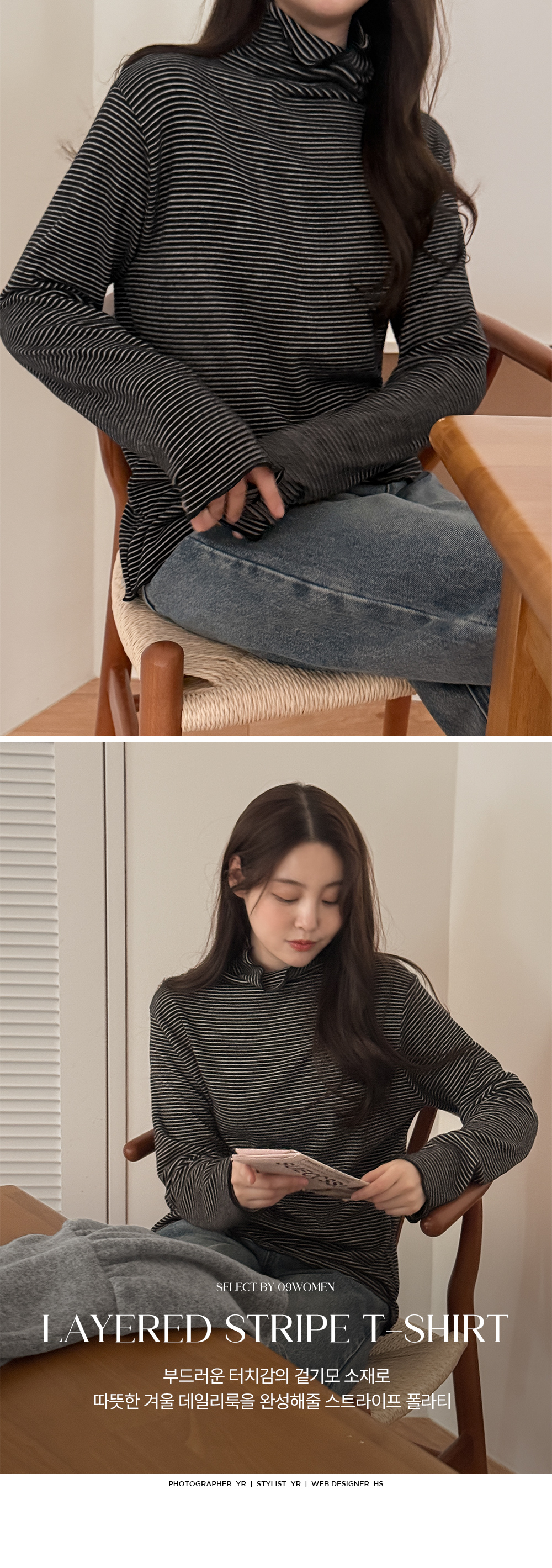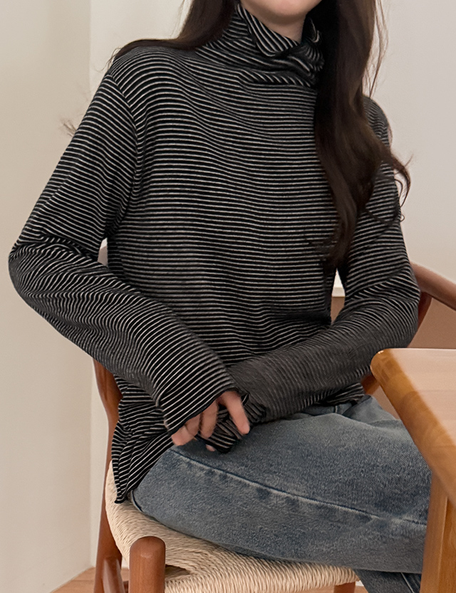 블리티 ストライプ レイヤード 起毛 タートルネック ティーシャツ 85684