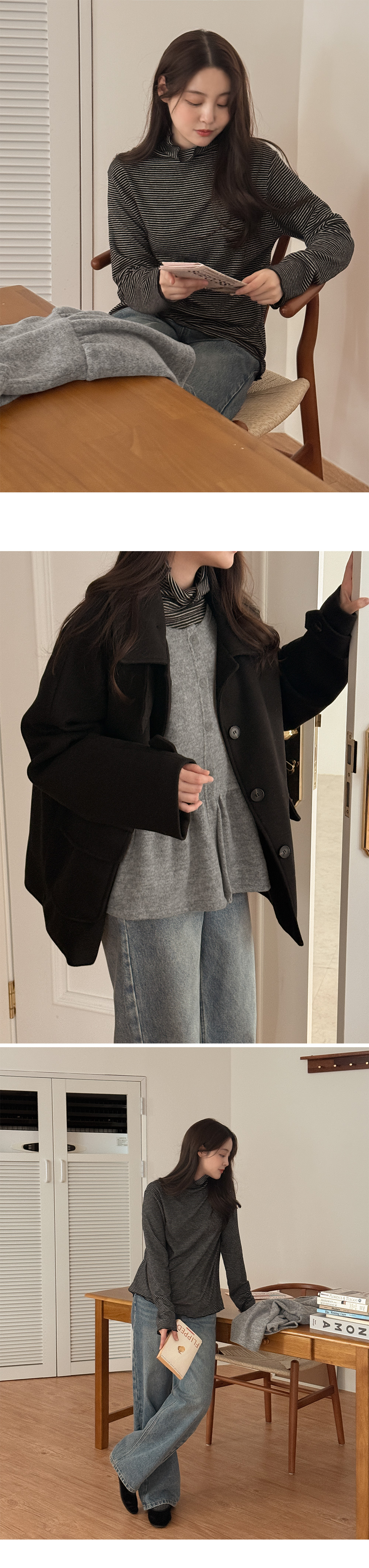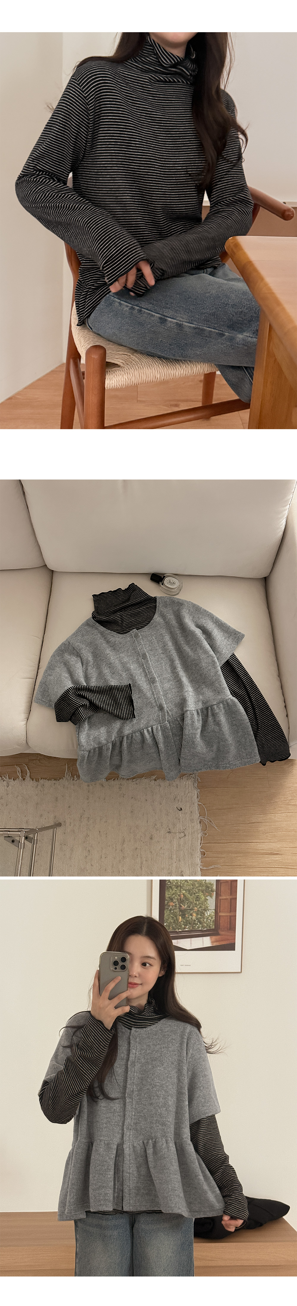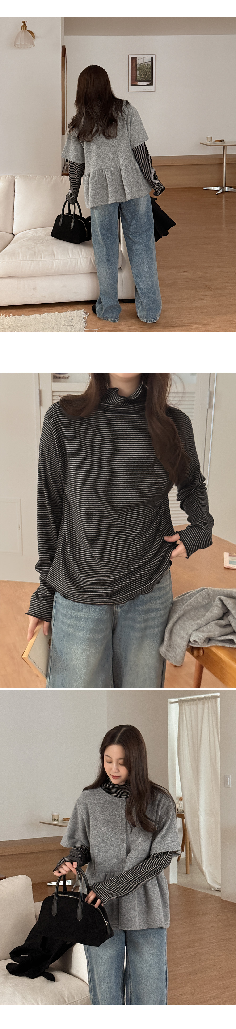 블리티 ストライプ レイヤード 起毛 タートルネック ティーシャツ 85684