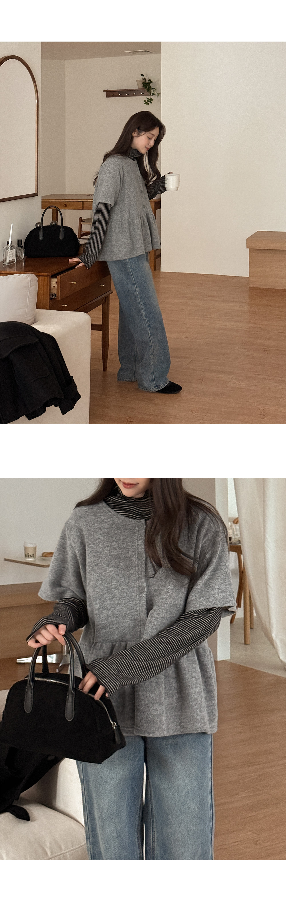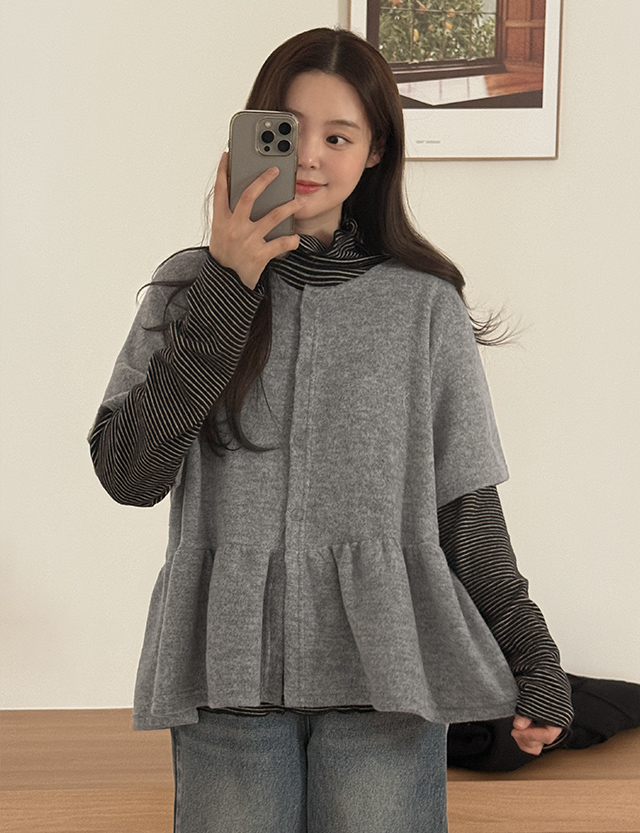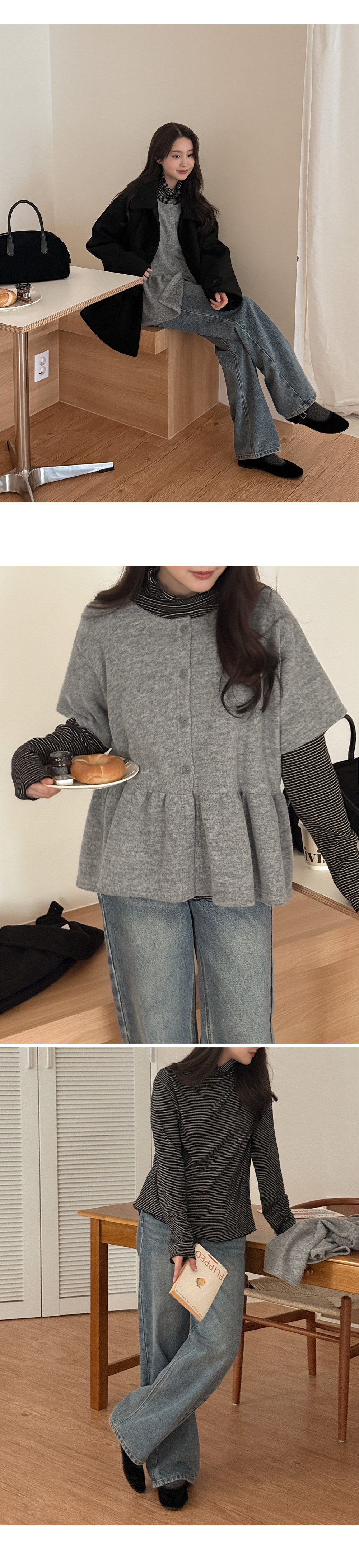 • 헤이틴 レイヤード 起毛 半袖 フリル カーディガン 85685