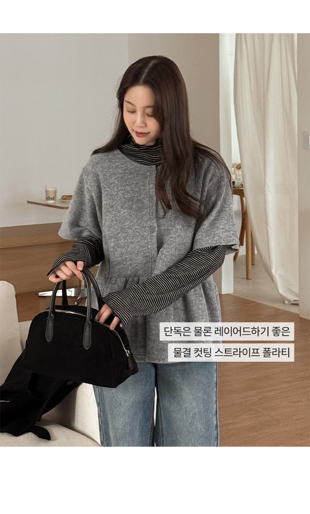 넥라인과 밑단, 소매끝단은 물결 컷팅 마감으로
