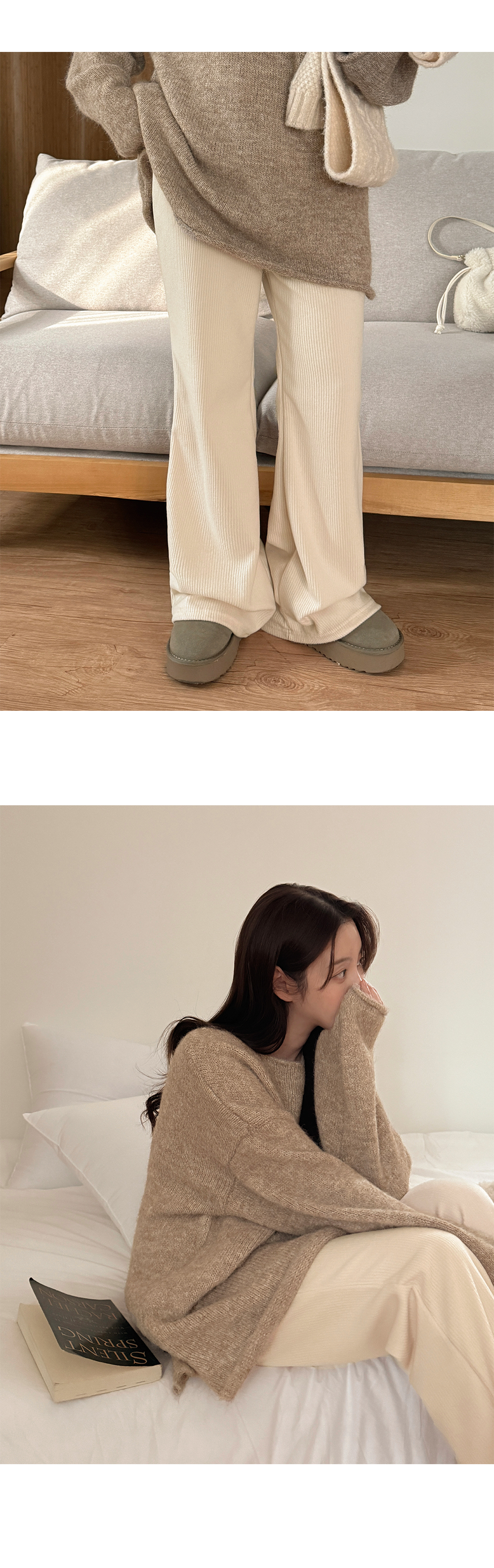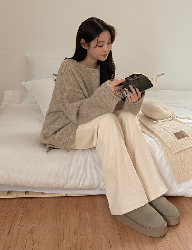 슬렌 속밴딩 リブ編み 양기모 ブーツカット パンツ 85639