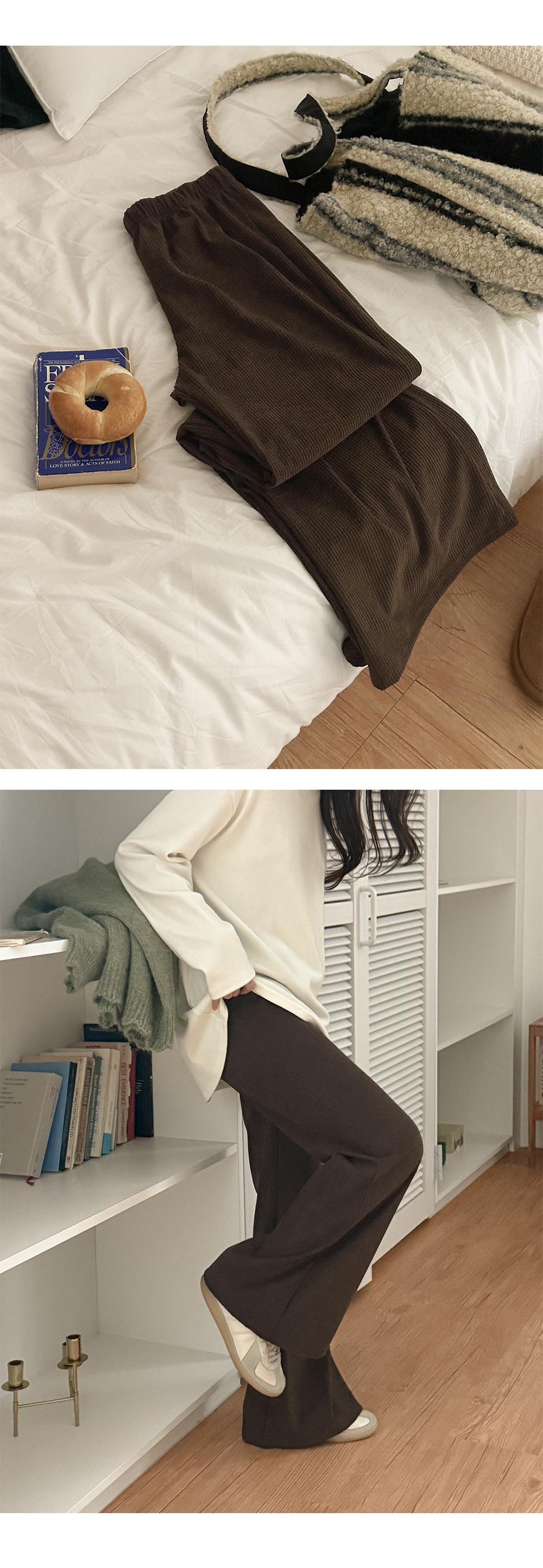 디어리 リブ編み ゴム ブーツカット パンツ 85690