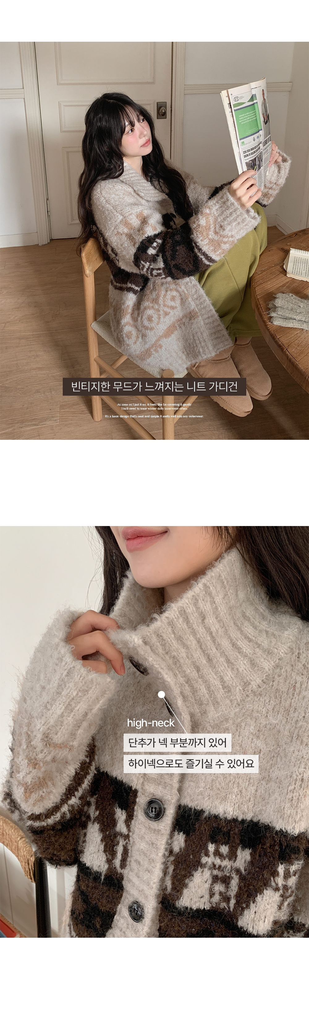 빈티지한 무드가 느껴지는 울 니트 가디건