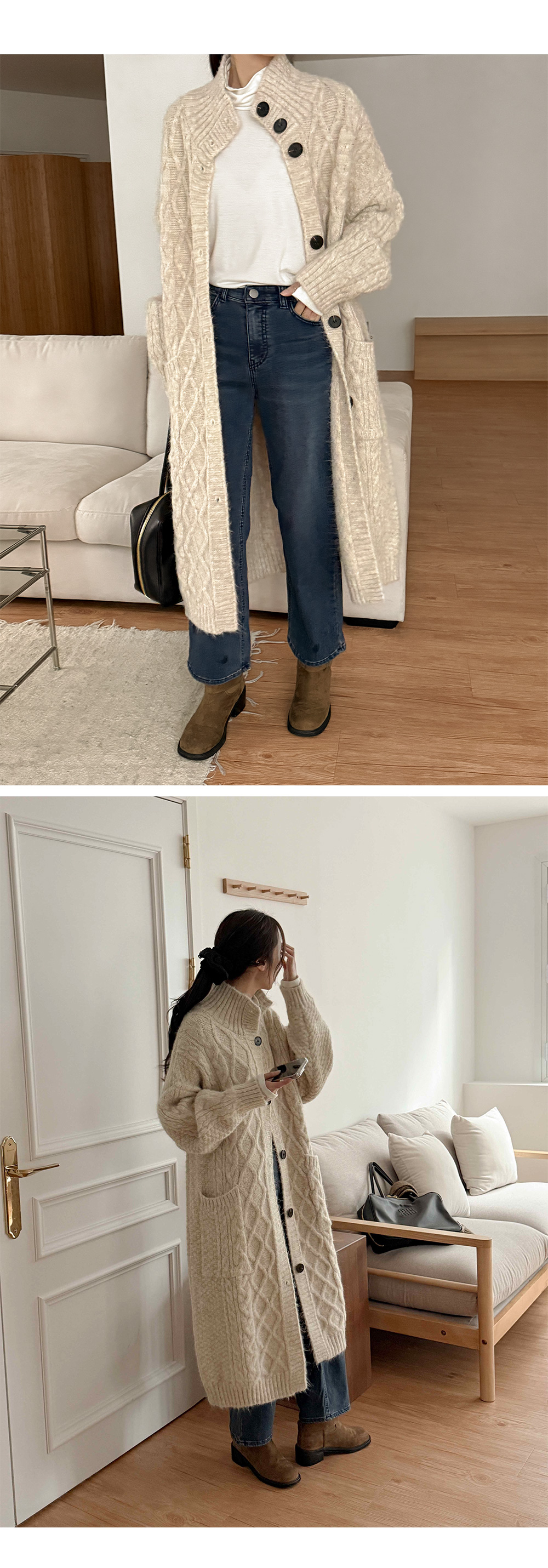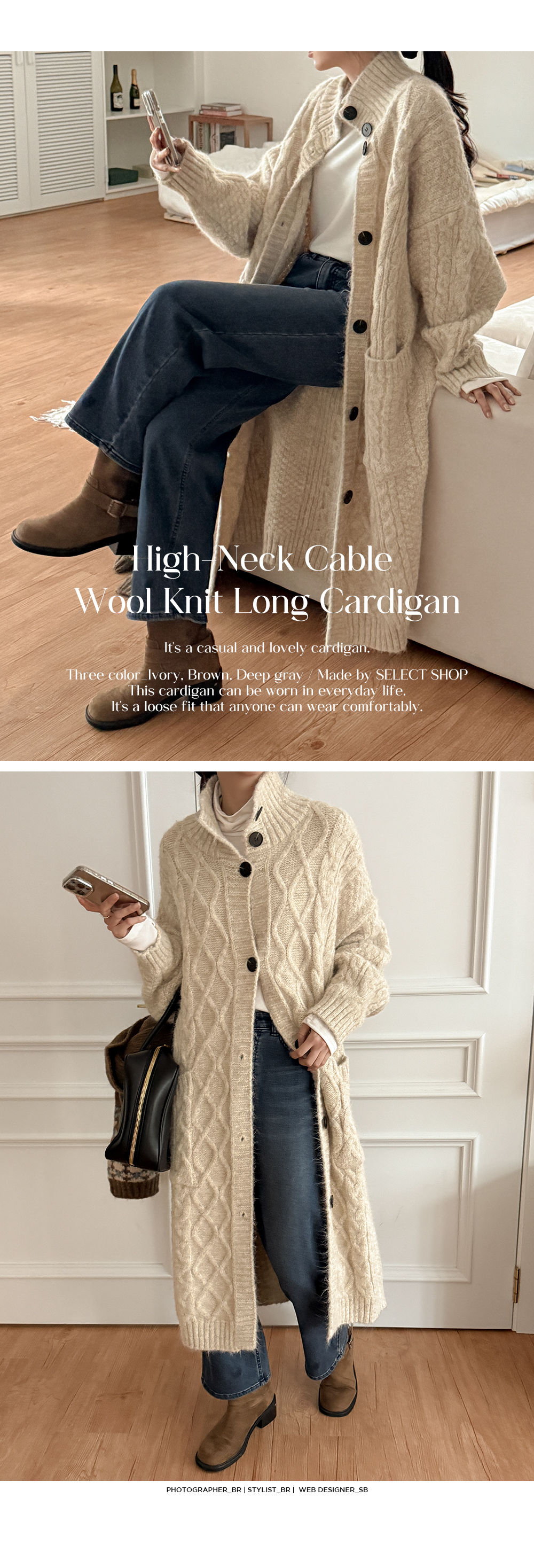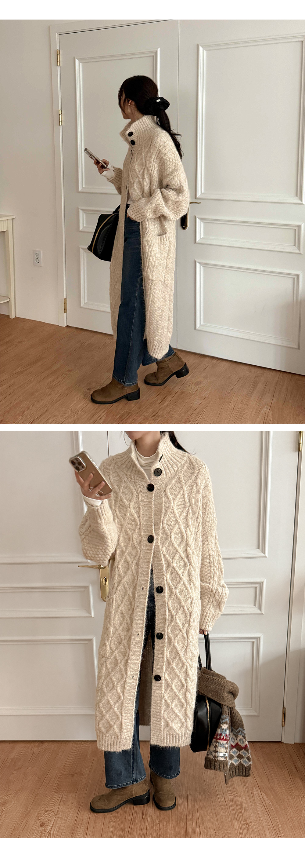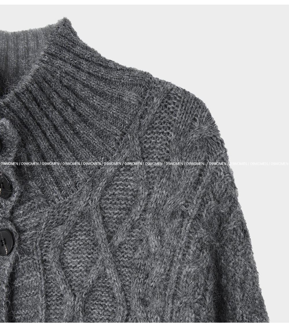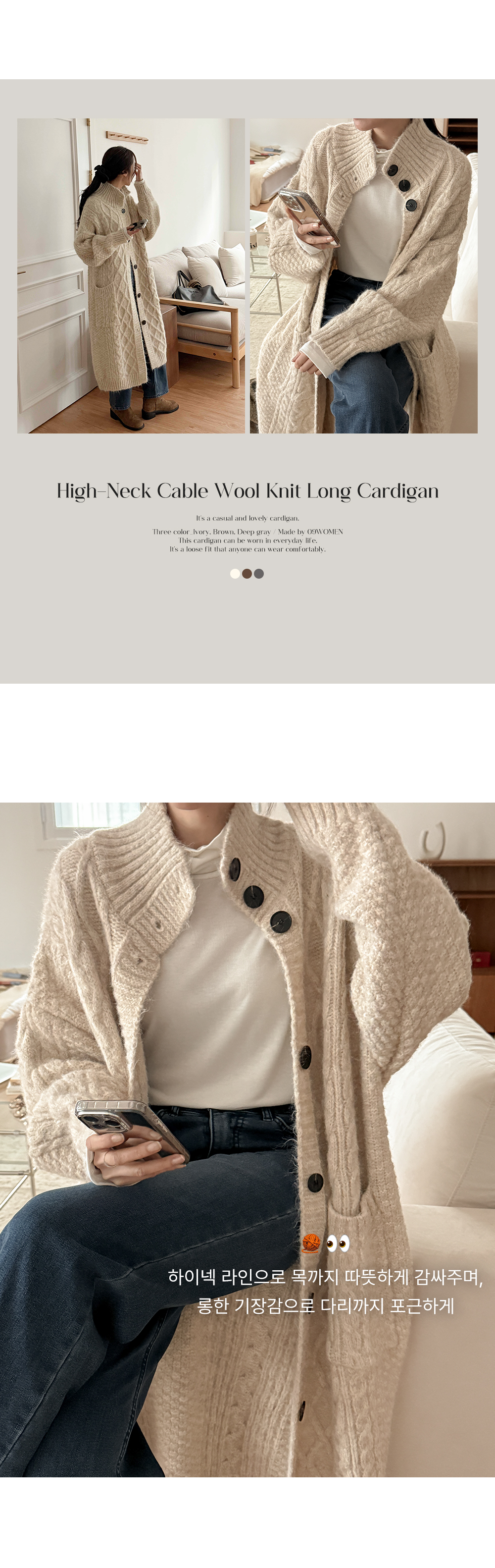 레모 ハイネック 케이블 ウール ニット ロング カーディガン85718