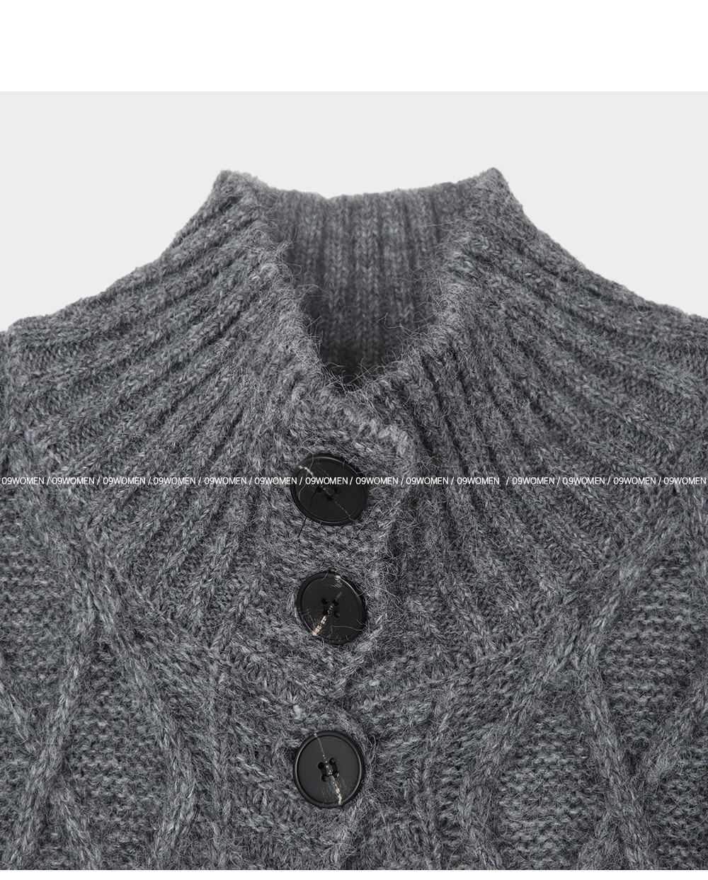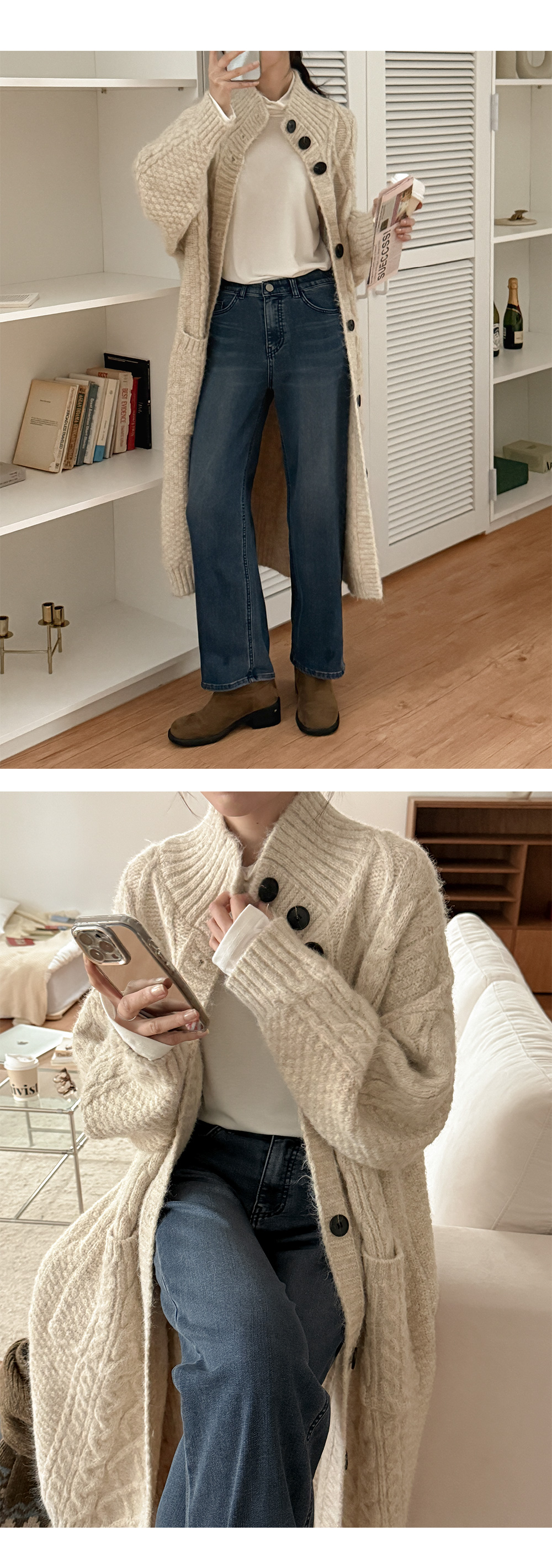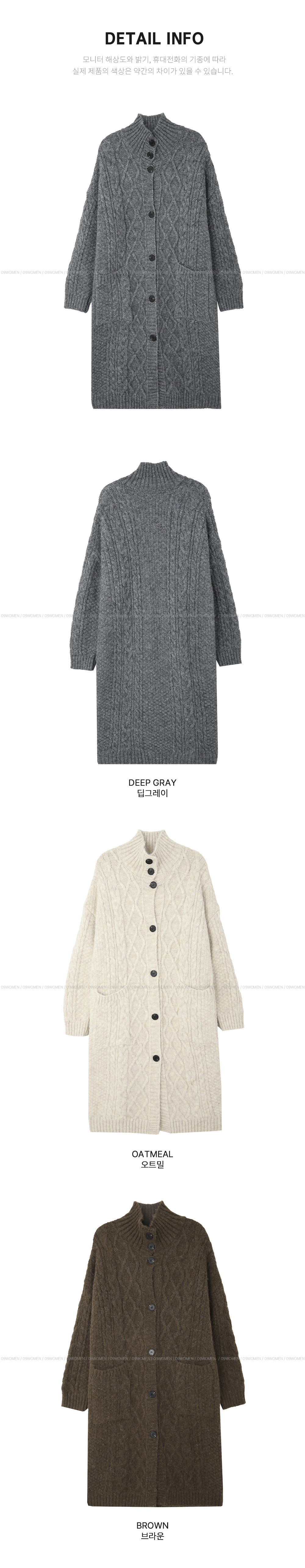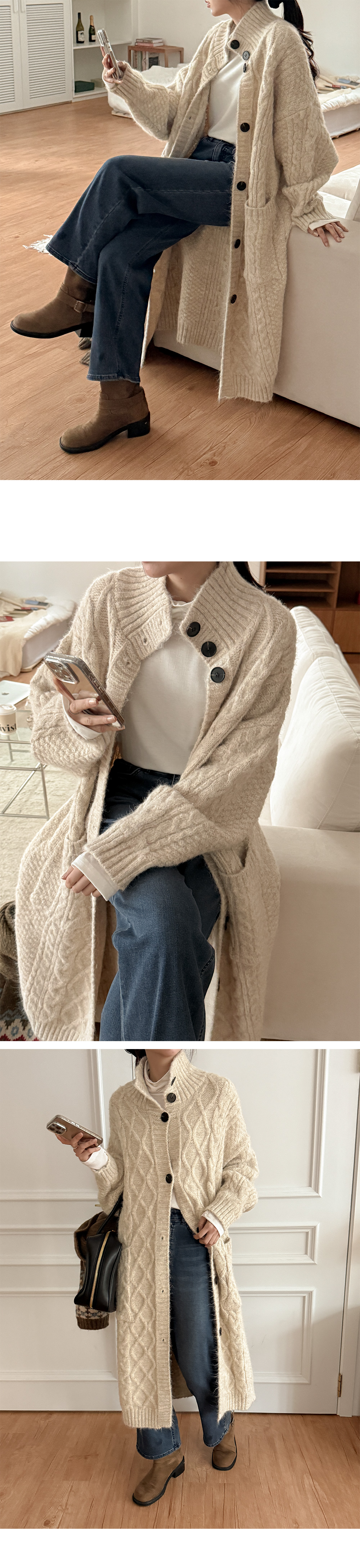 레모 ハイネック 케이블 ウール ニット ロング カーディガン85718