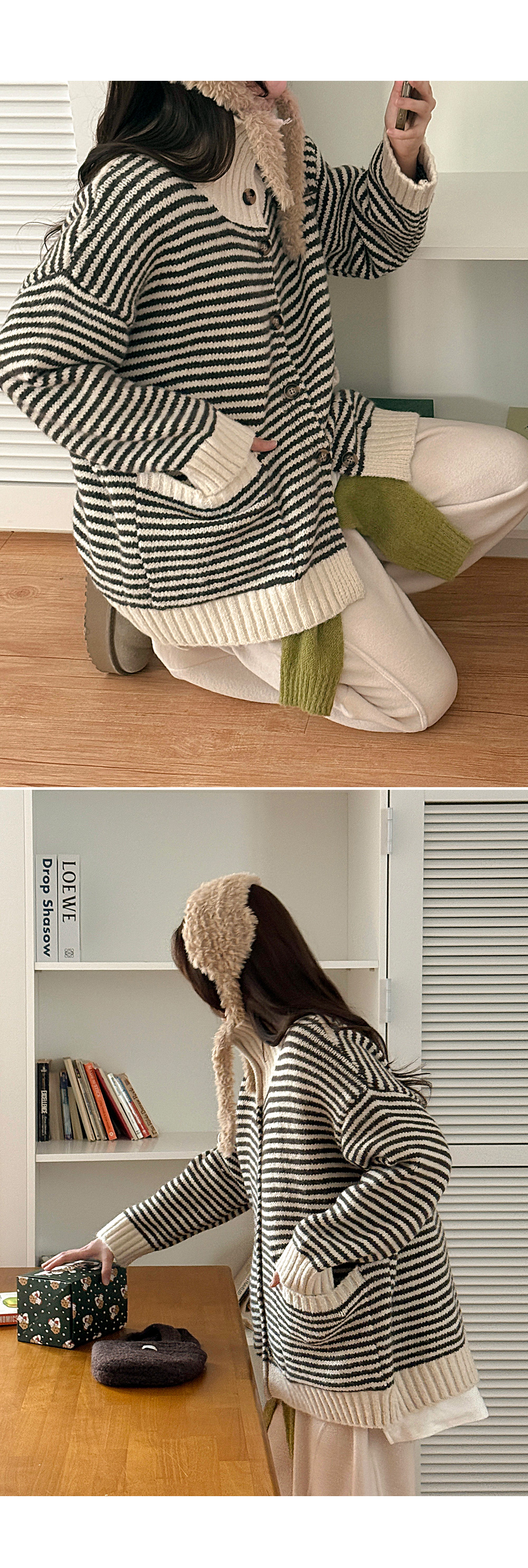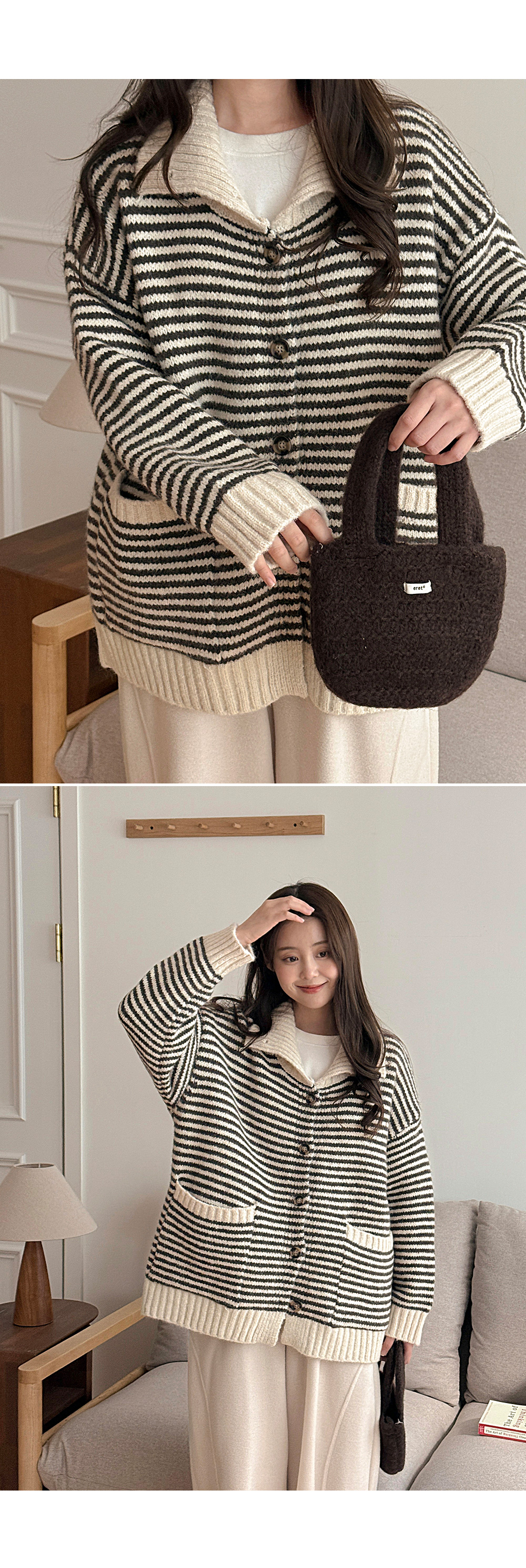 • 뉴셀 ルーズフィット ストライプ ハイネック カーディガン 85764
