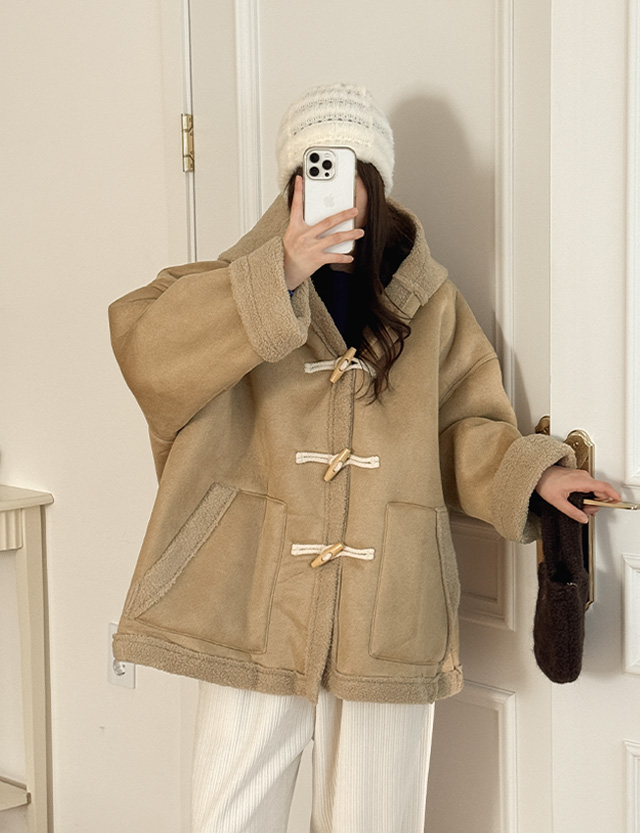레셀 ルーズフィット ムートンコート フード  コート 85768