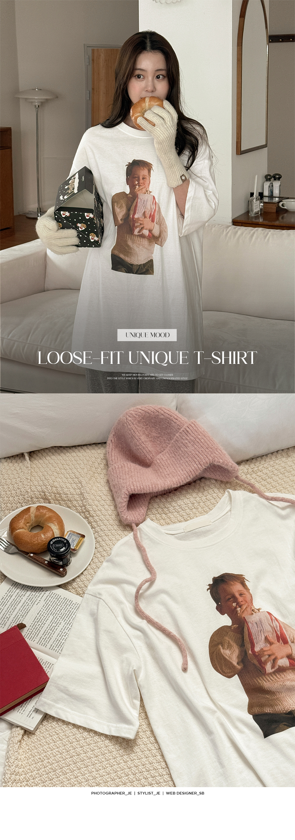 매리스 ルーズフィット ユニーク プリンティング 半袖 ティーシャツ 85754