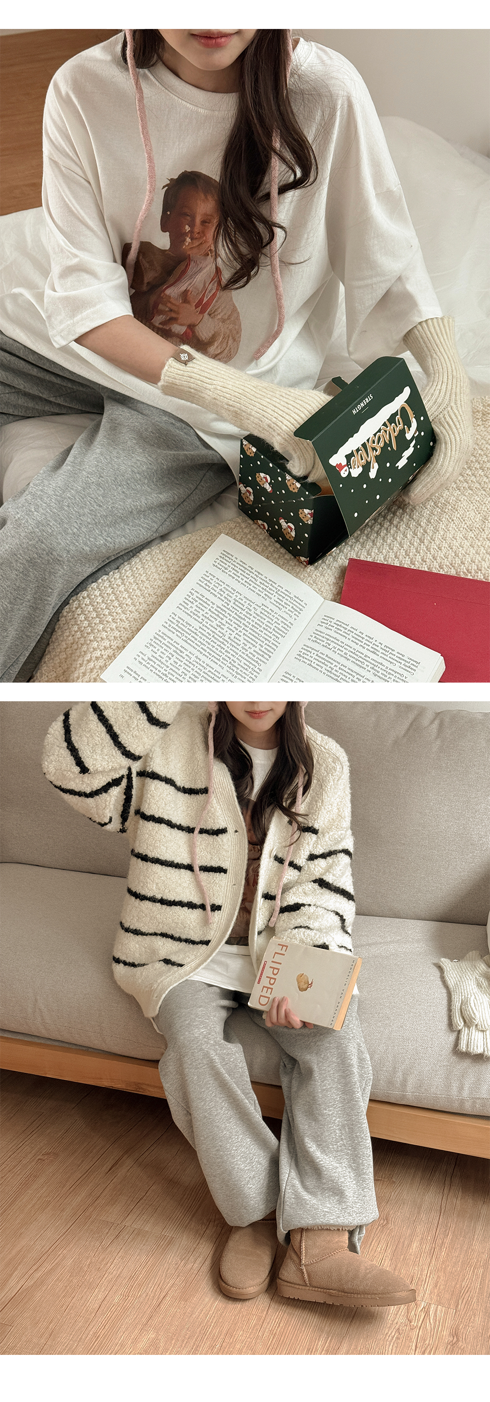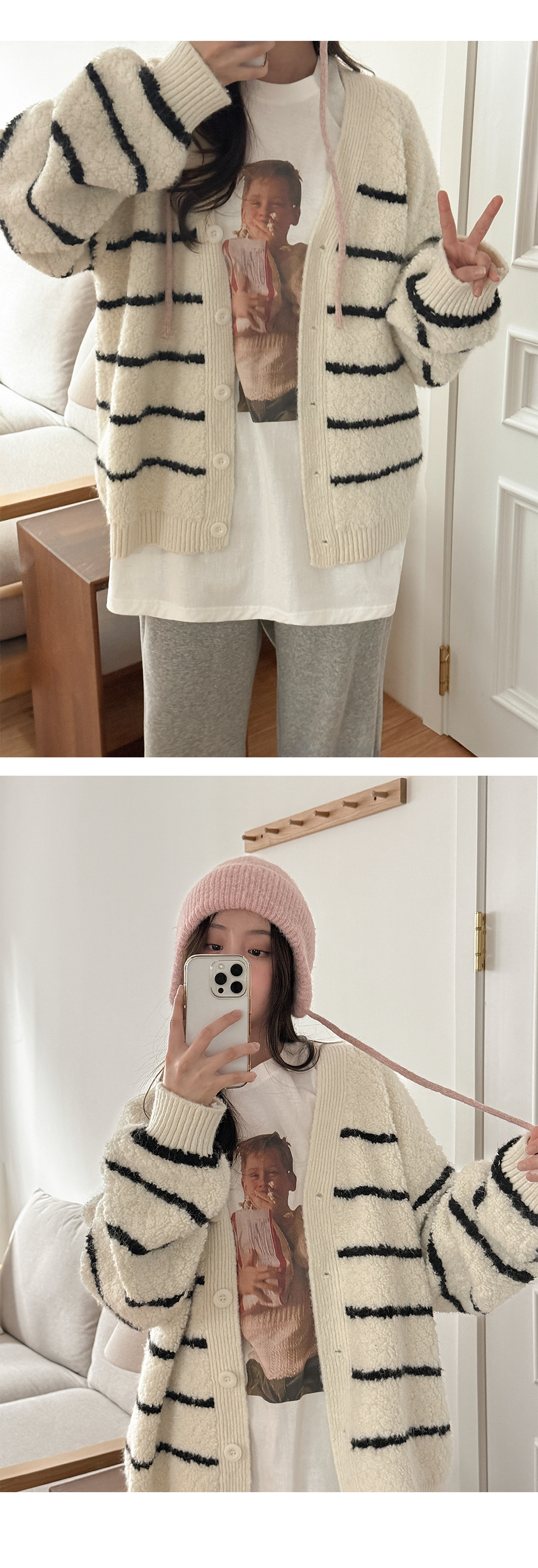 • 럽윤 アルパカ ボーダー ウール V カーディガン 85753
