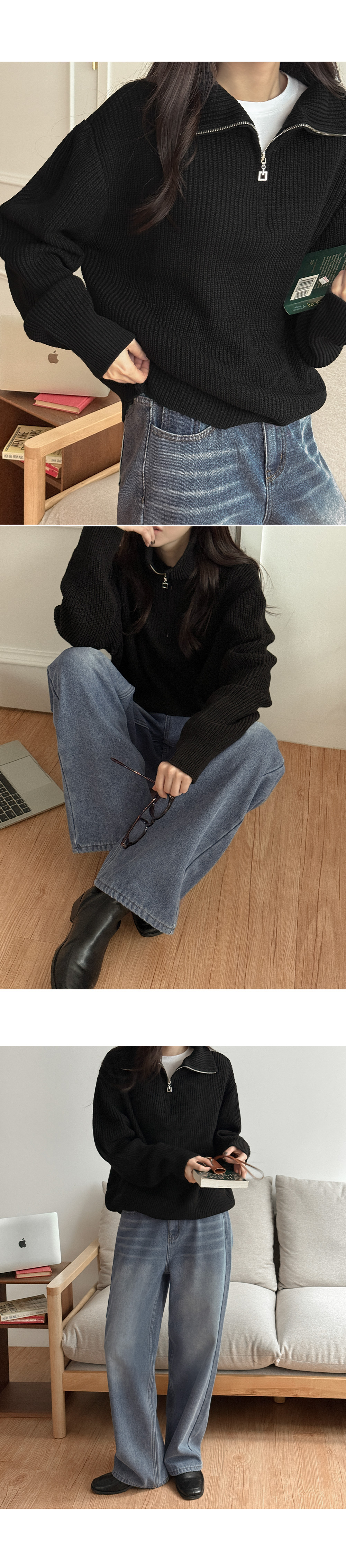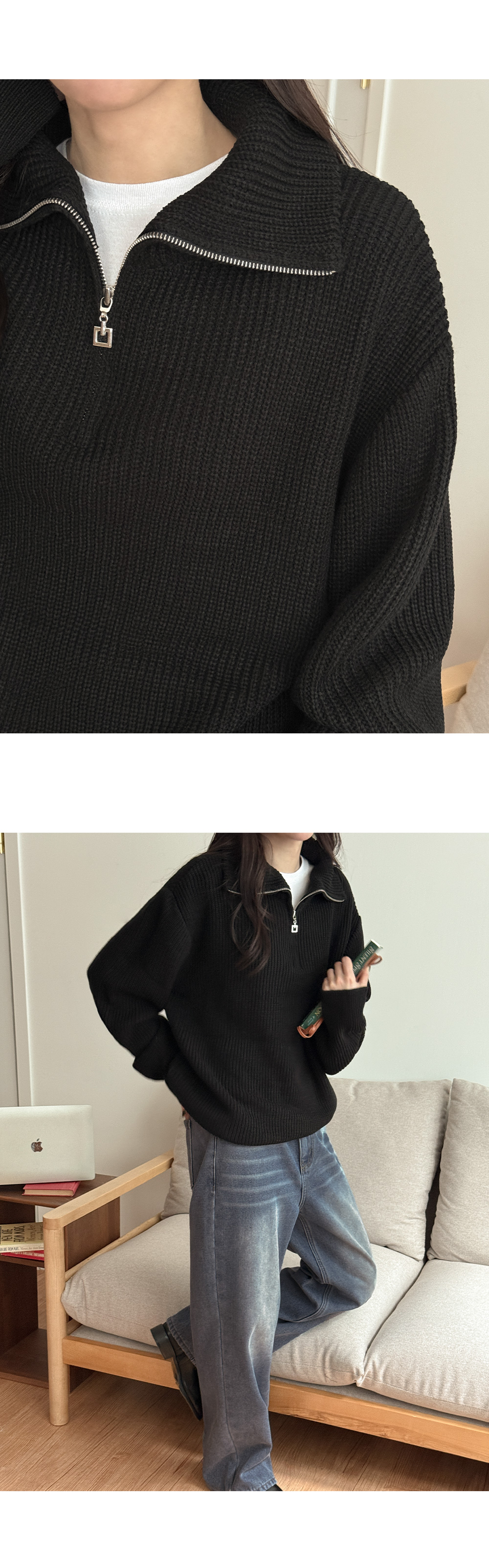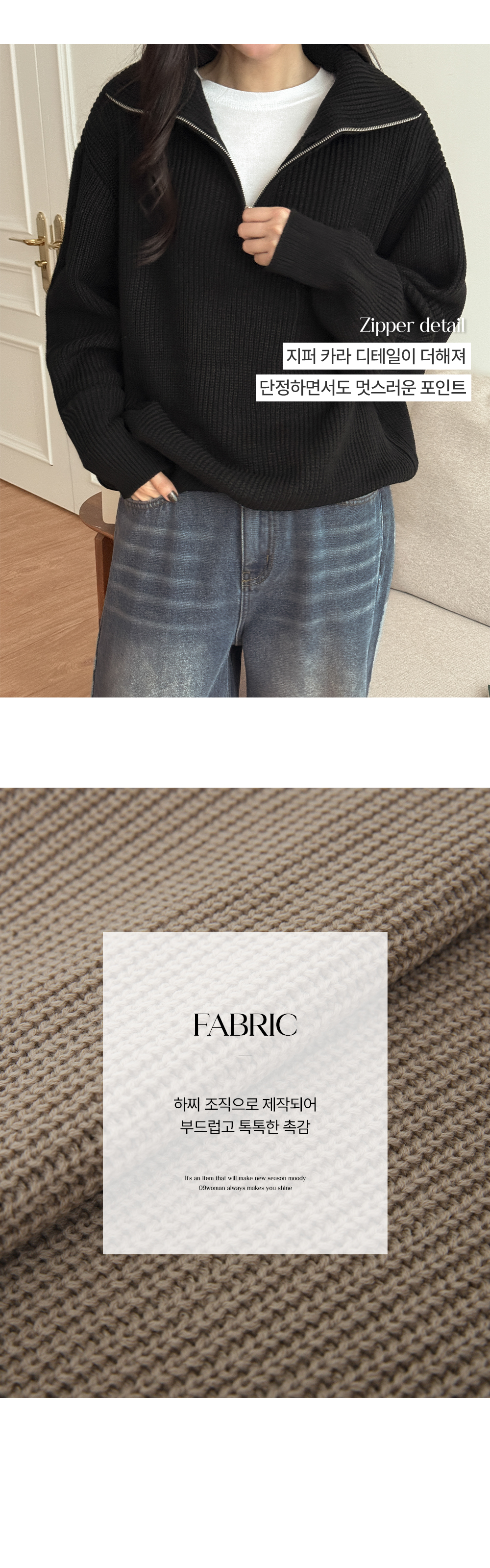 루즈핏 하찌 지퍼 카라 니트