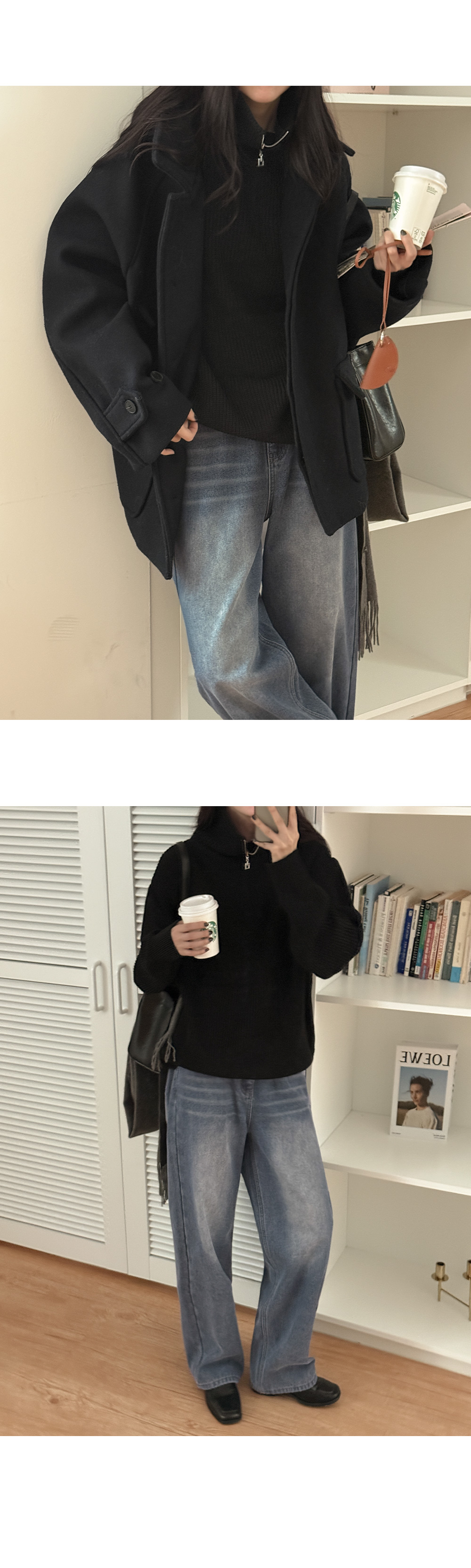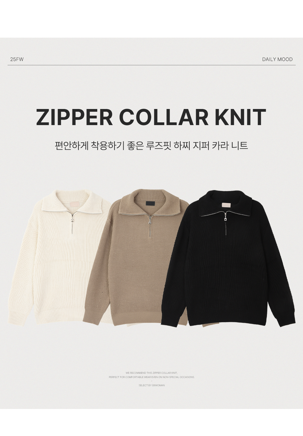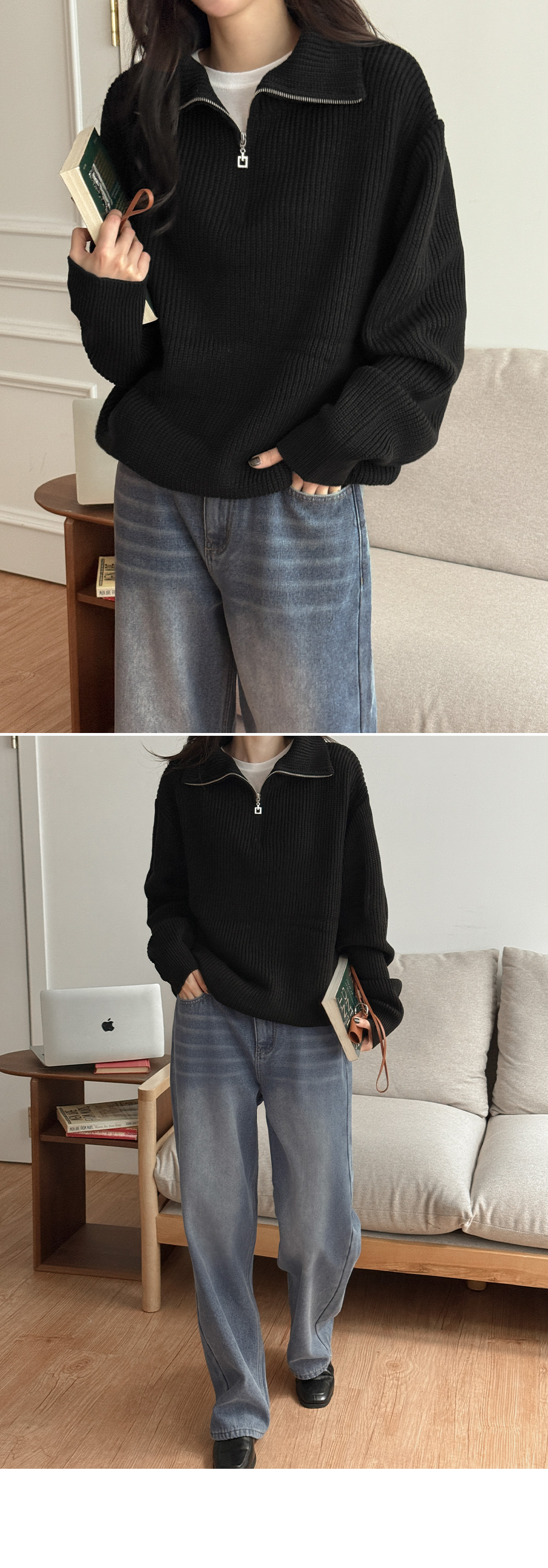 루즈핏 하찌 지퍼 카라 니트