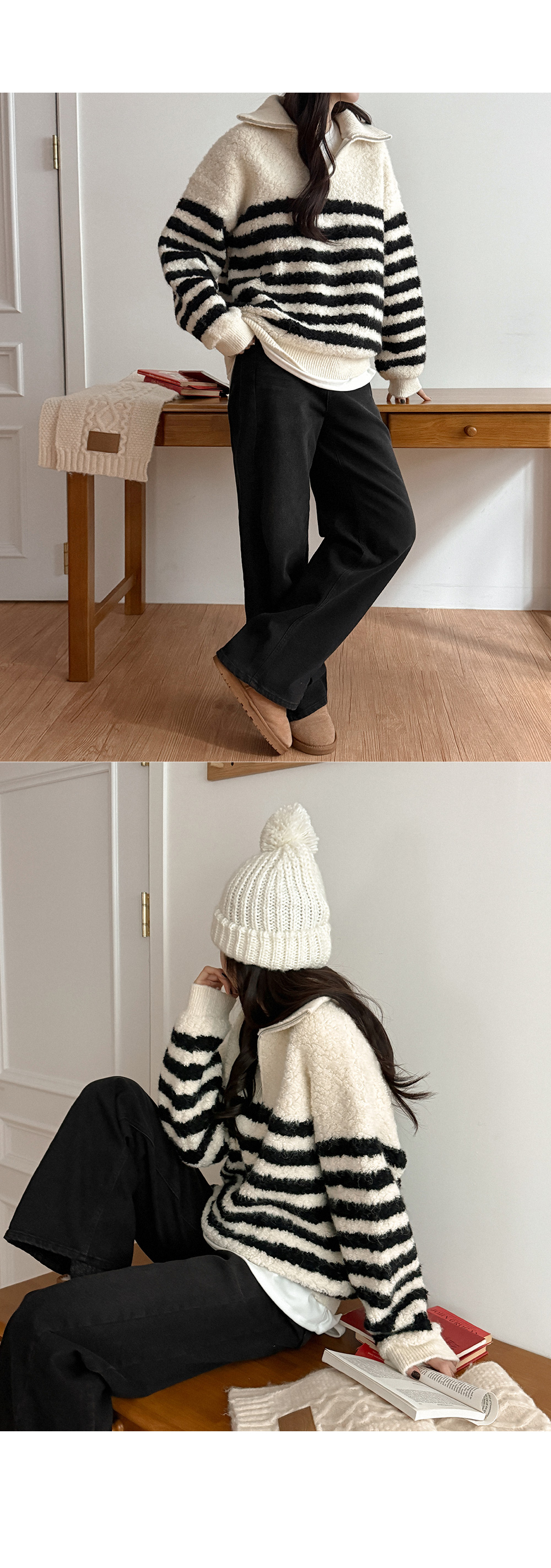 • 아원 ストライプ アノラック ウール ニット 85884