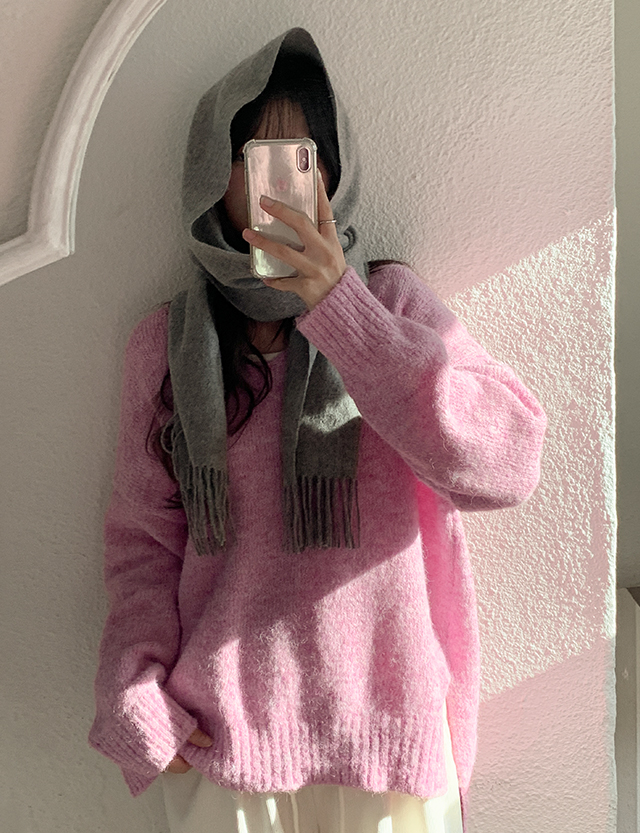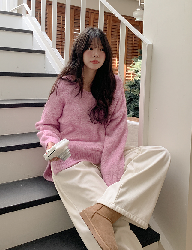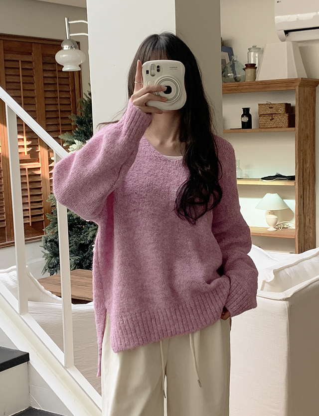 세나 헤어리 Vネック 슬릿 ウール ニット 85866