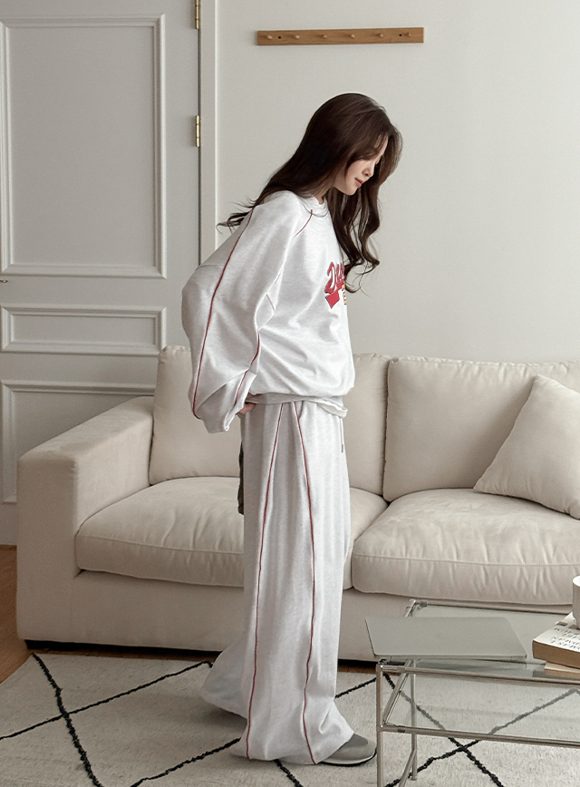 콘미 ルーズフィット 레터링 ライン ポイント スウェット 86095