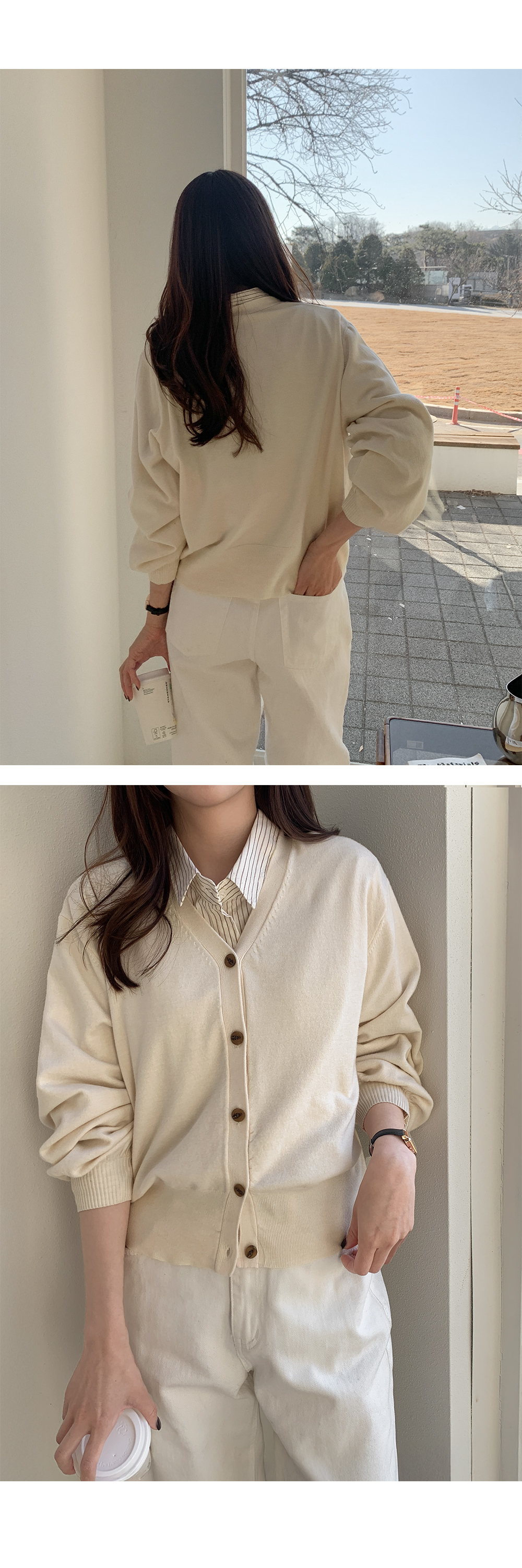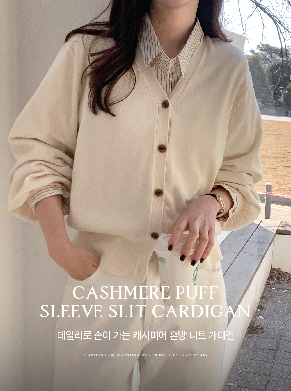 데일리로 손이 가는 캐시미어 혼방 니트 가디건이에요.