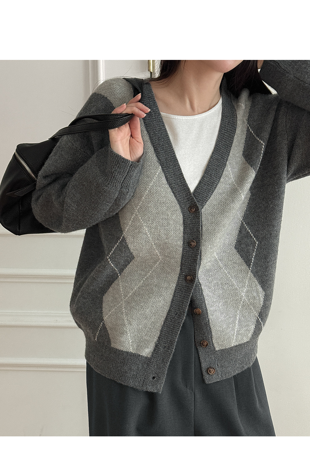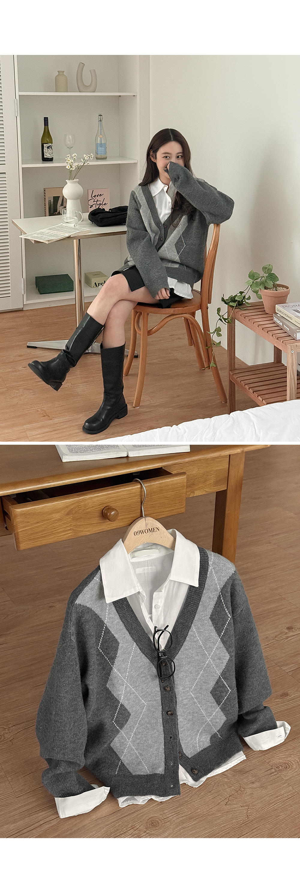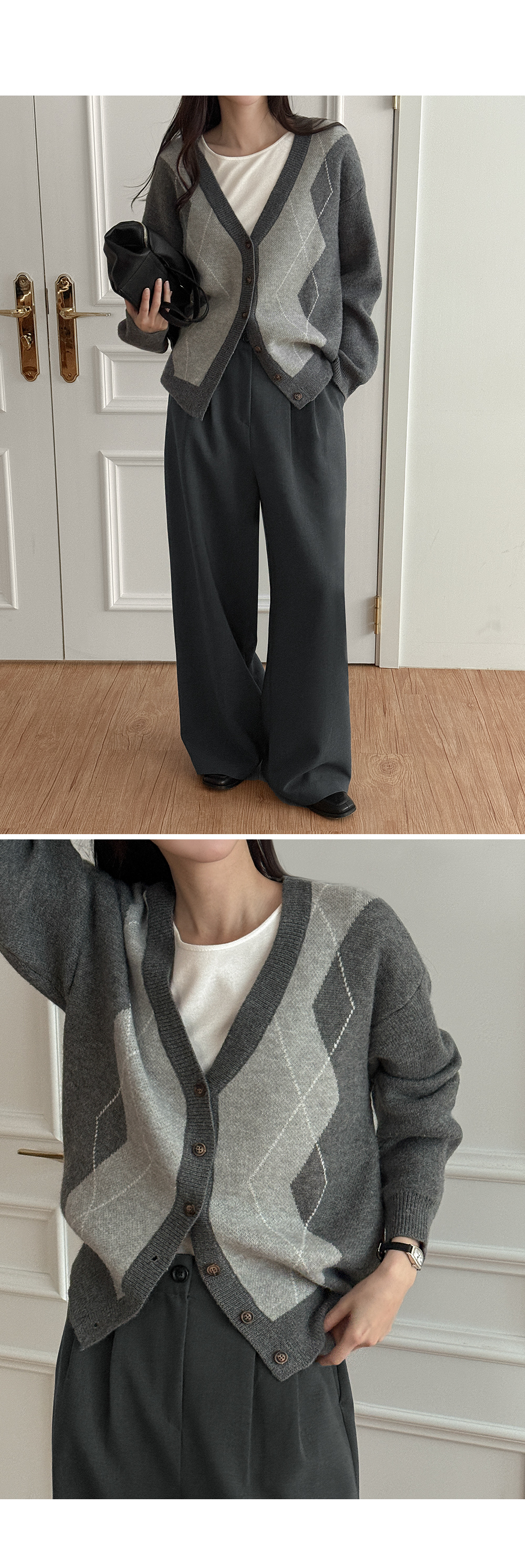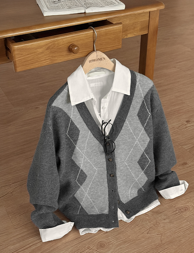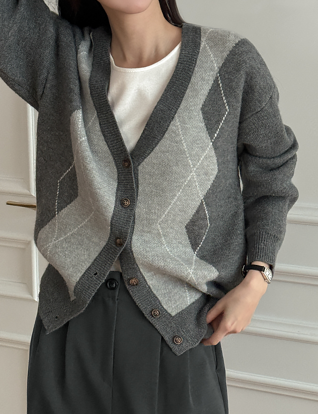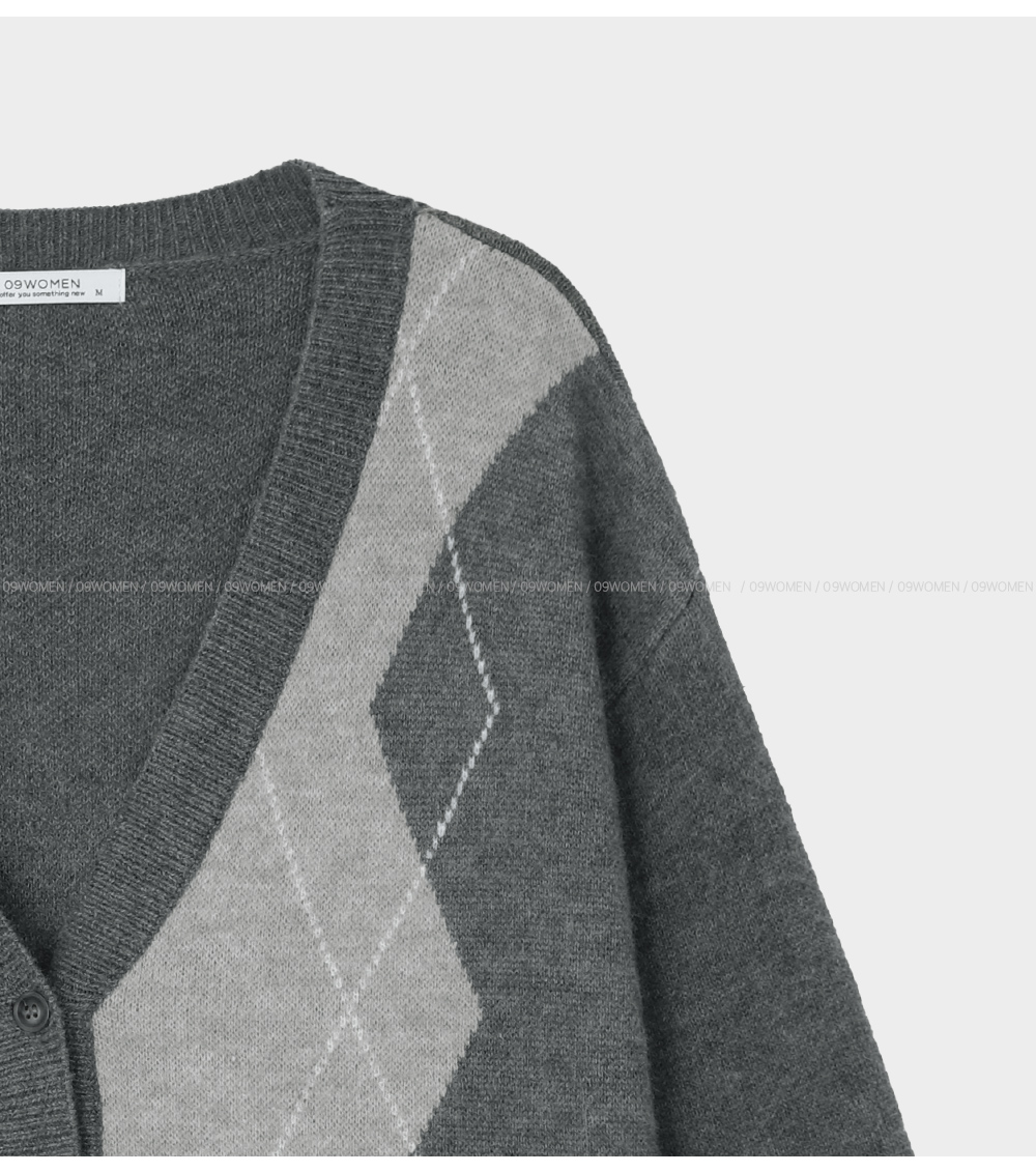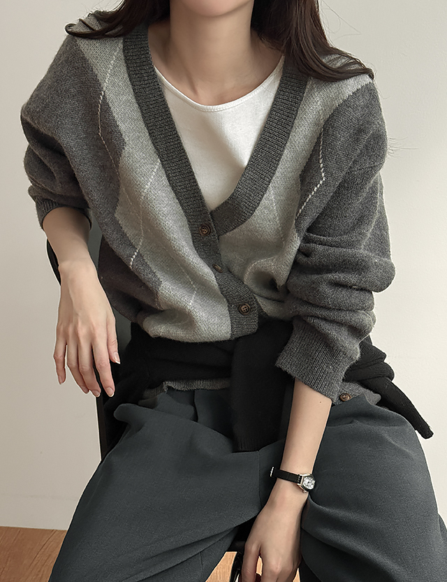 파율 Vネック 아가일 ルーズフィット カーディガン 86109