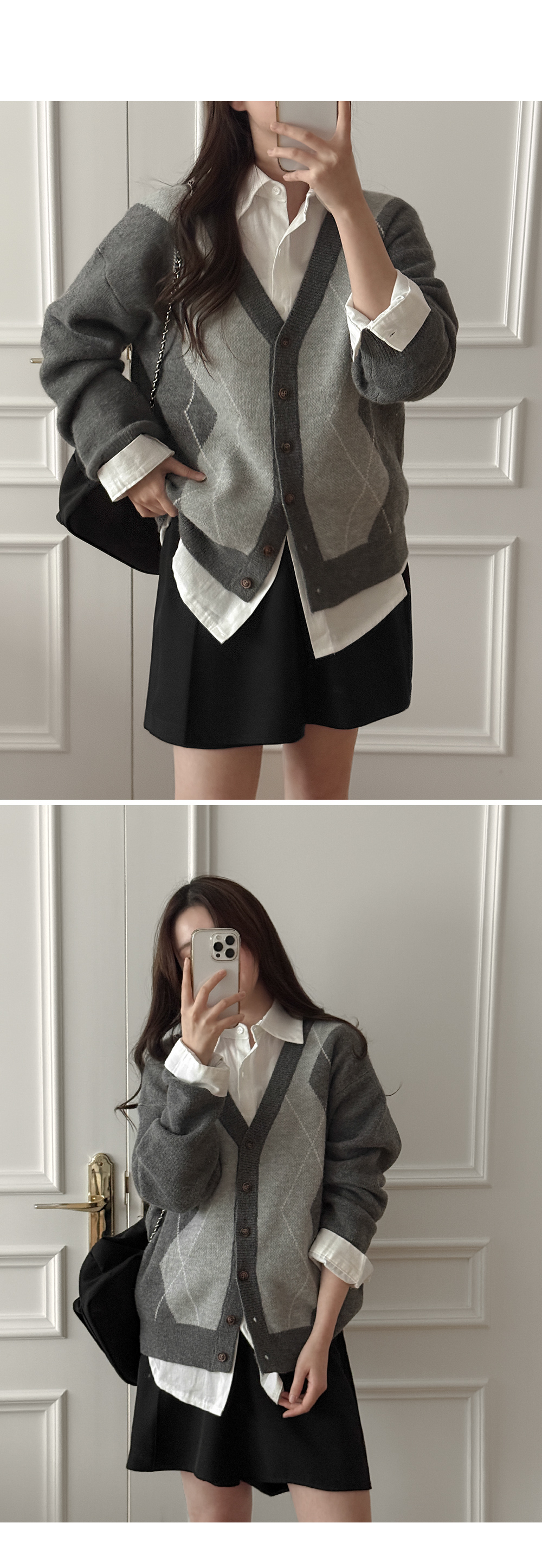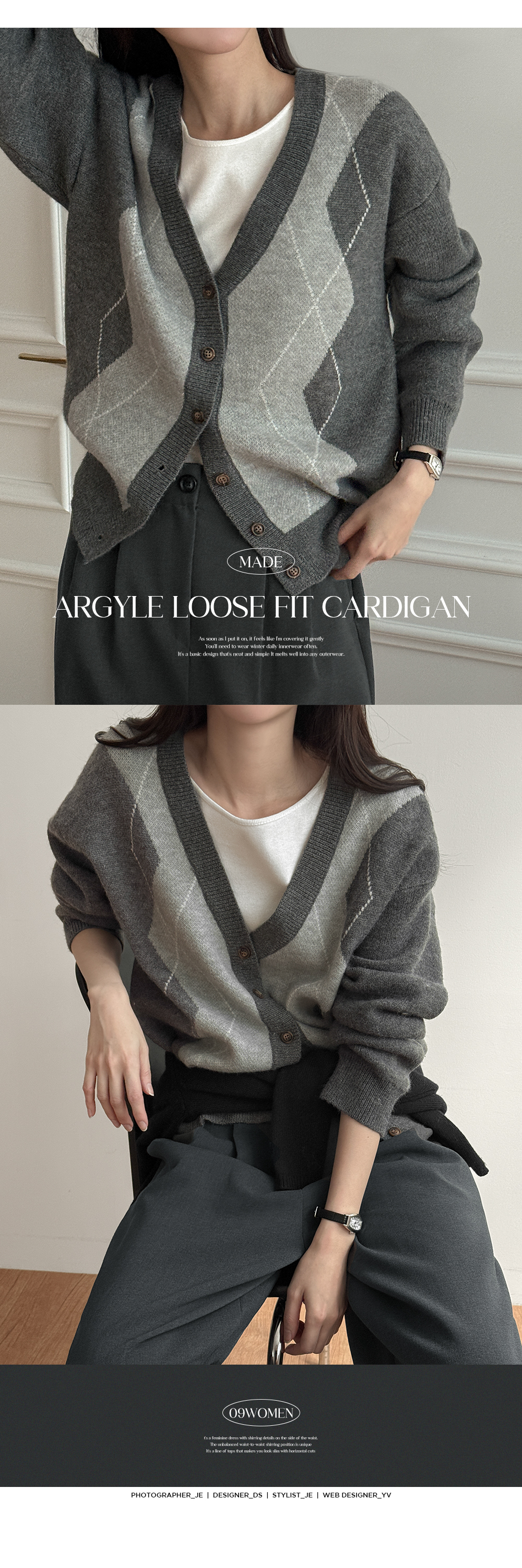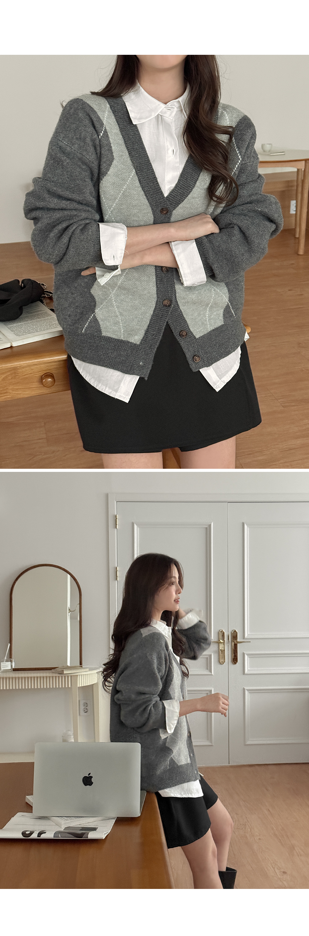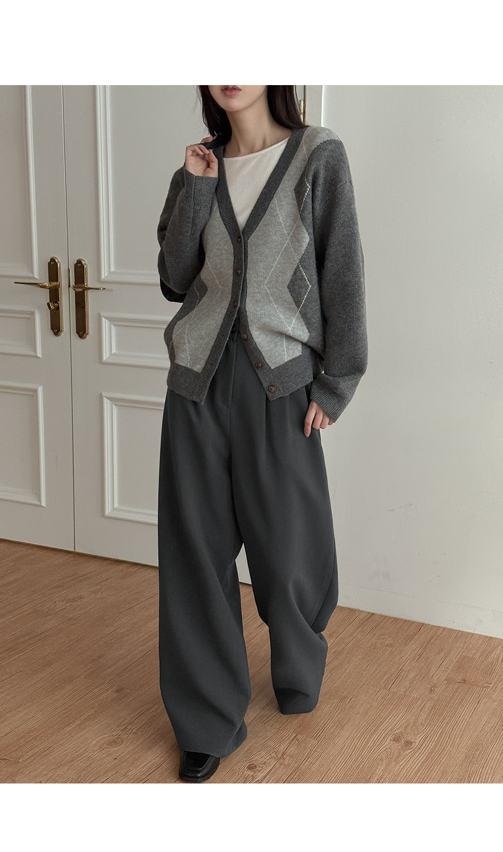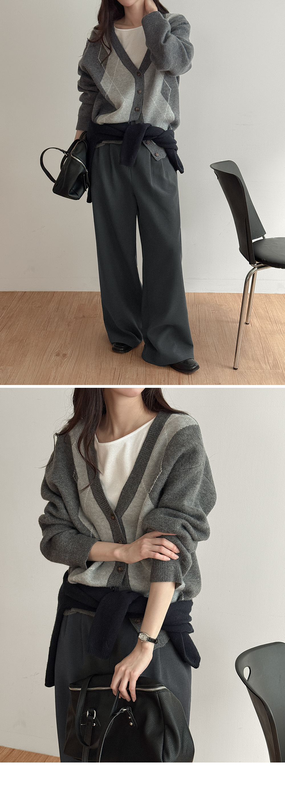 파율 Vネック 아가일 ルーズフィット カーディガン 86109