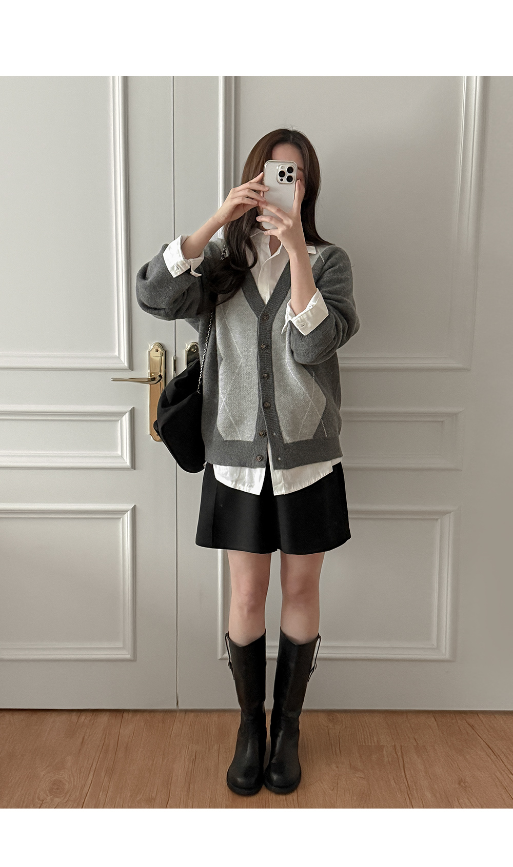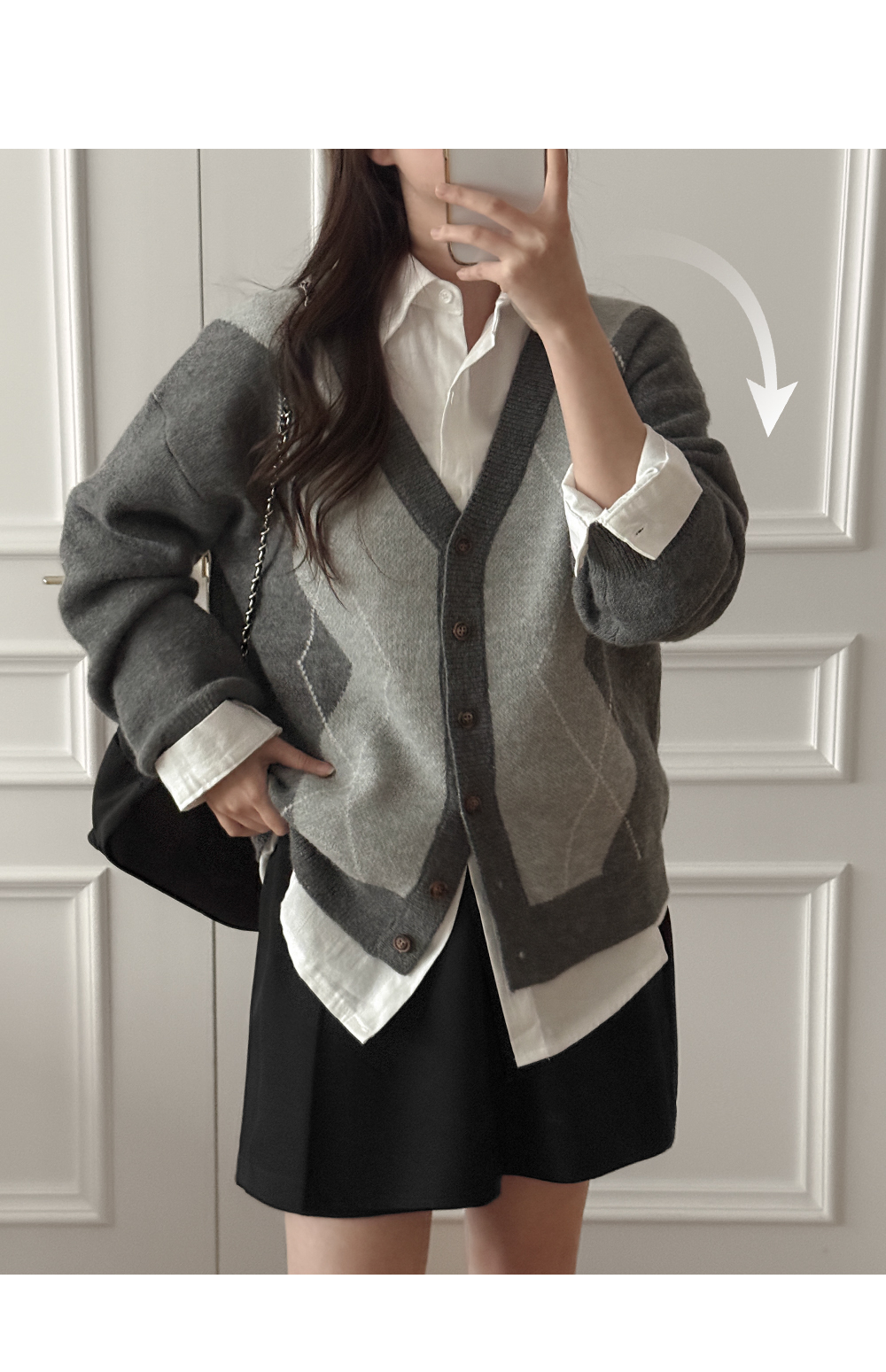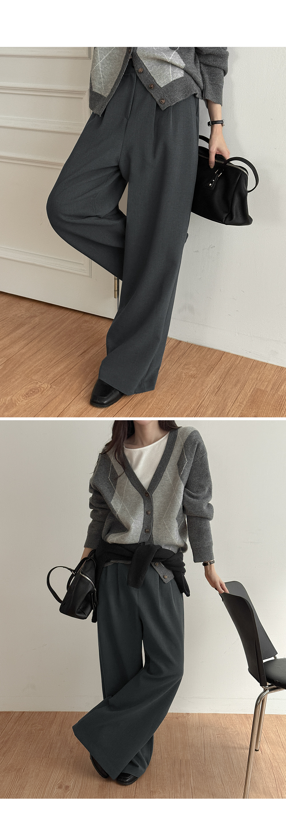 톤 다운 된 챠콜 컬러 바탕에 아가일 패턴을 섞어