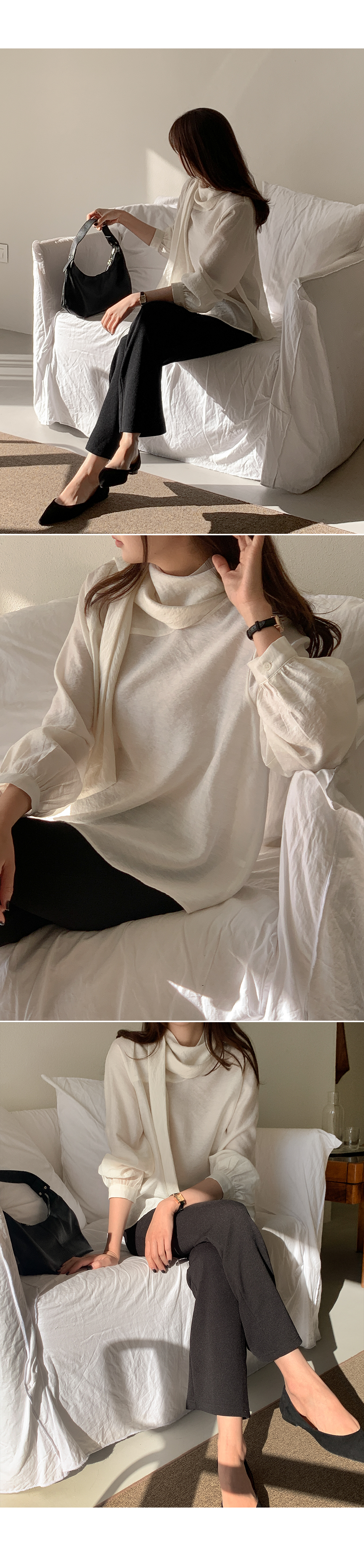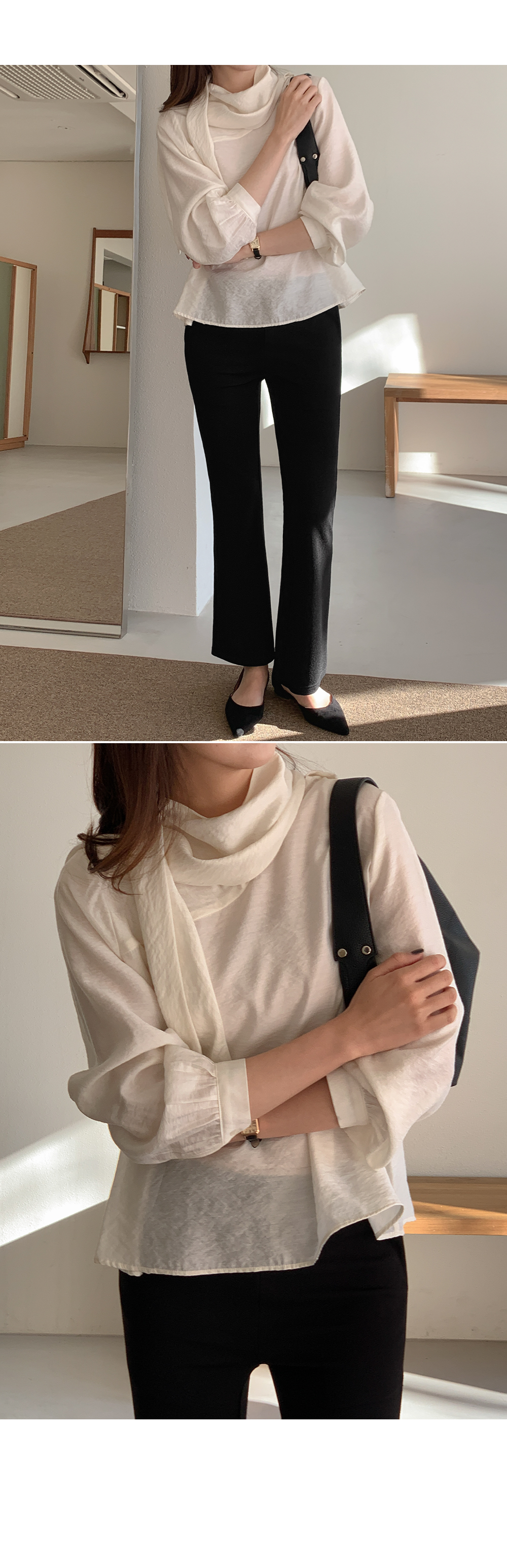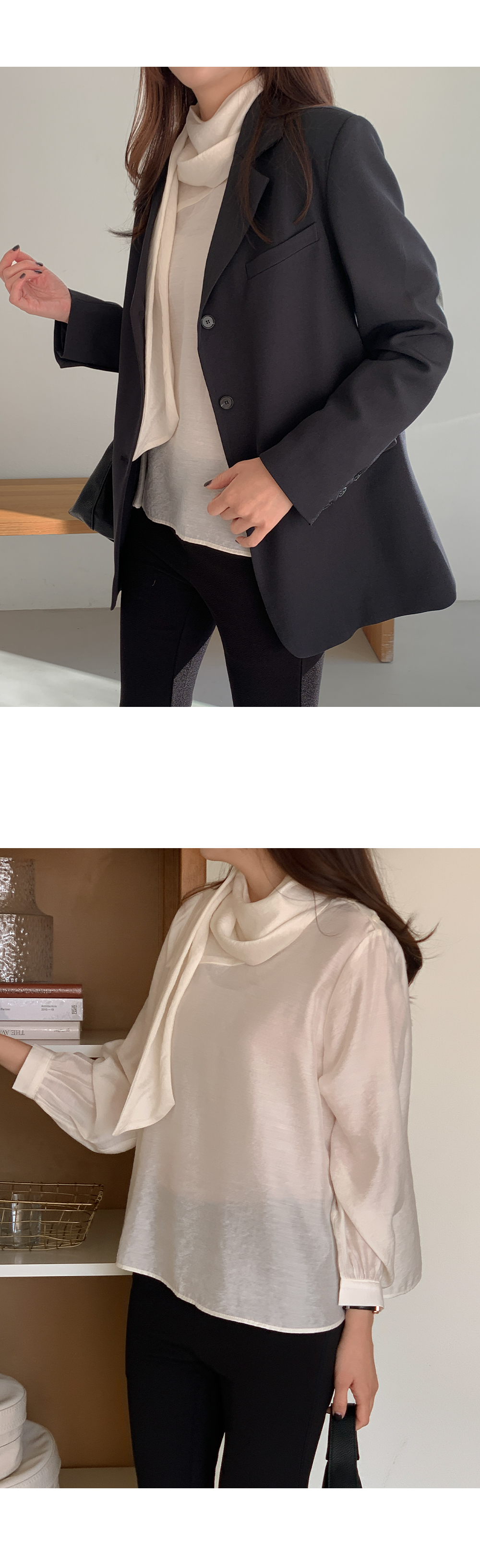 차르르한 원단감으로 분위기를 한껏 끌어올려주는 타이 블라우스예요.