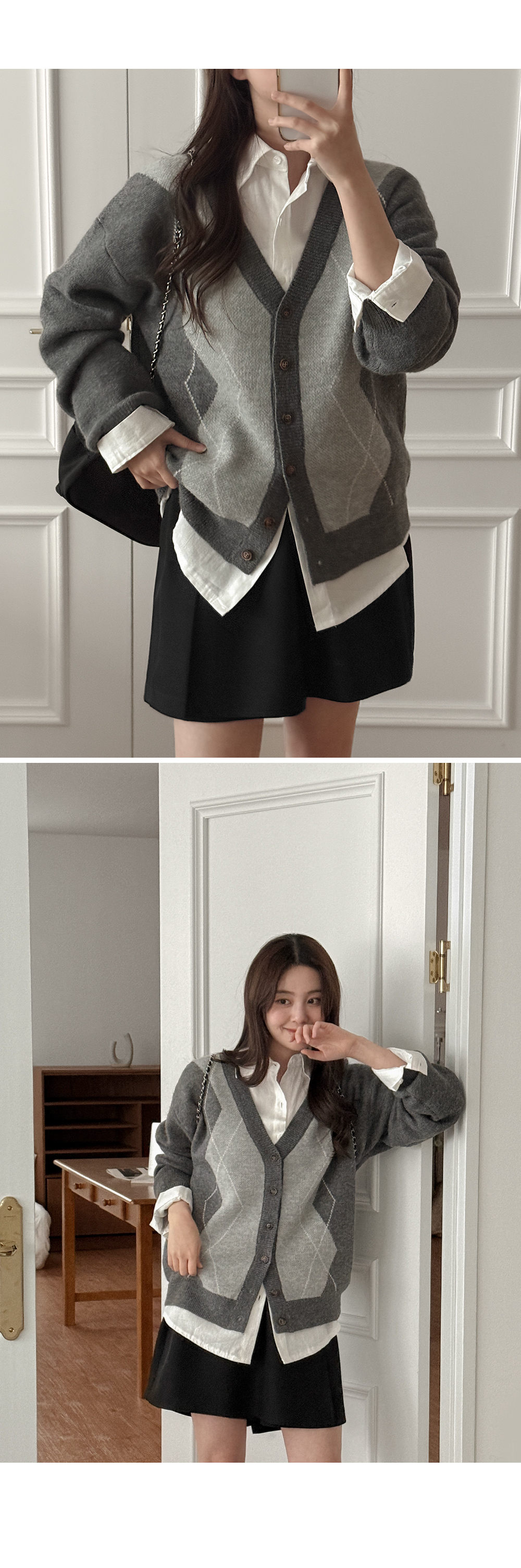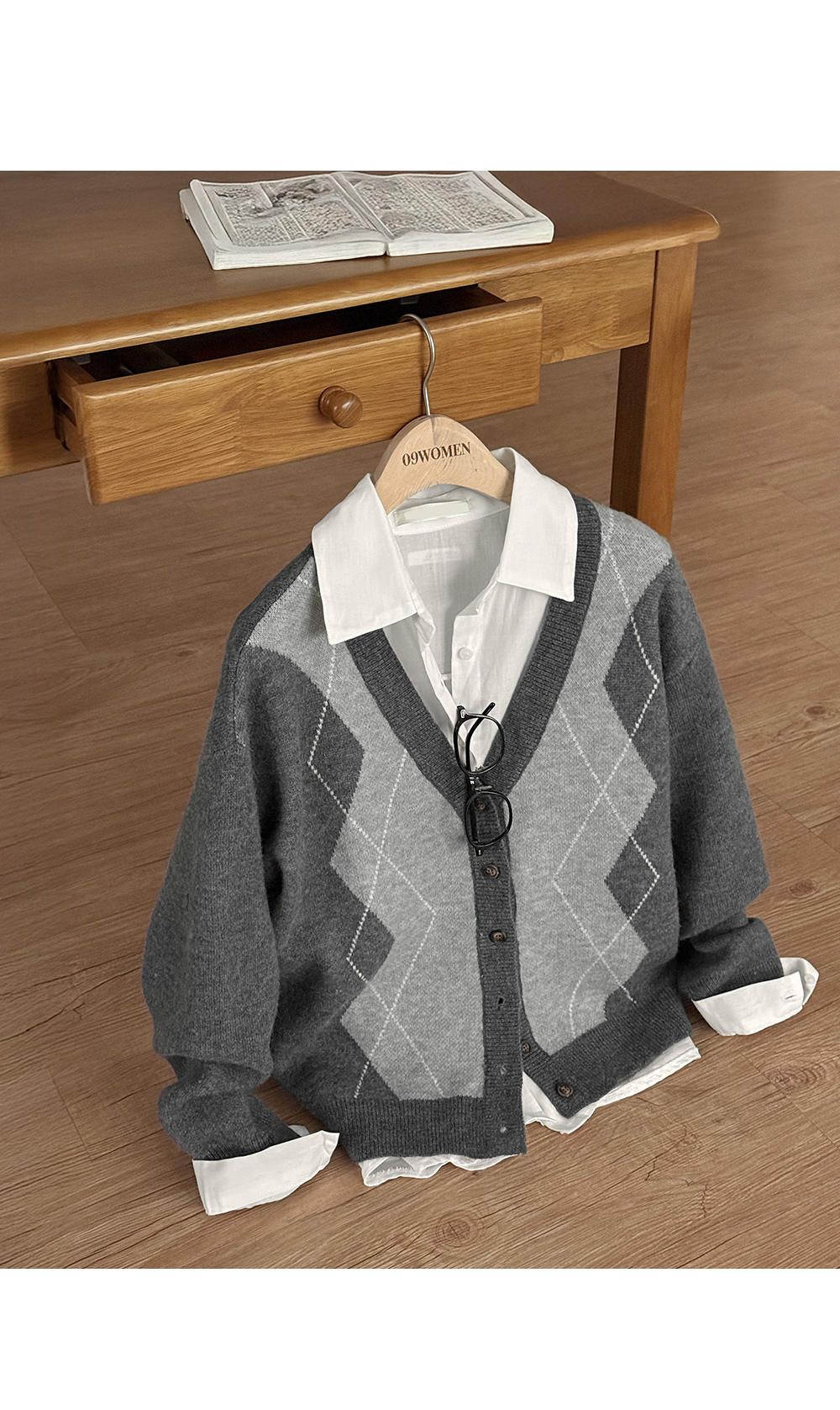 • 파율 Vネック 아가일 ルーズフィット カーディガン 86109