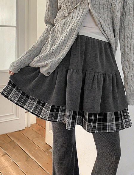 • 브브츄 ゴム レイヤード チェック ミニ スカート 86142