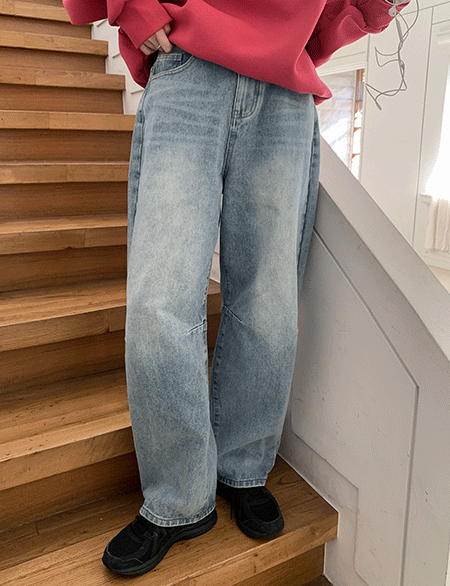 • [2가지기장] 네브 무릎 다트 ポイント ワイド デニムパンツ 86056