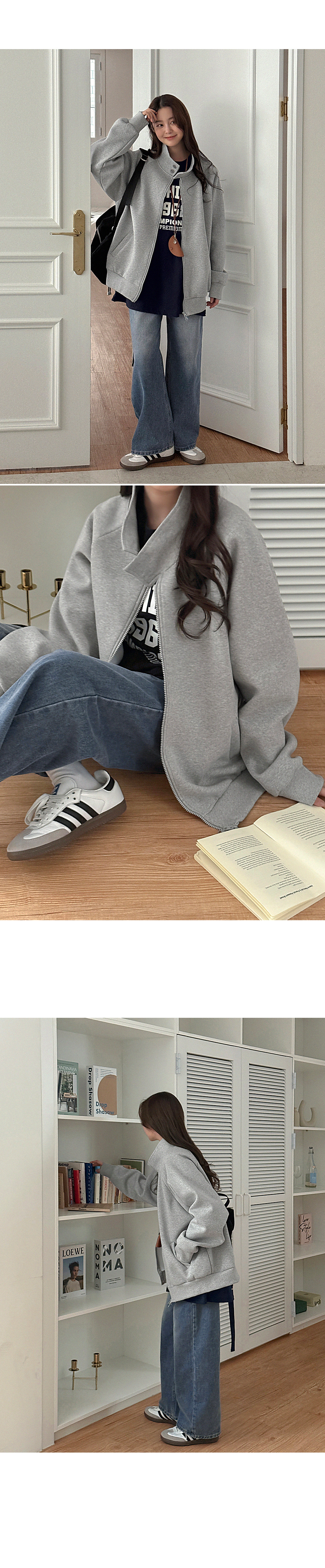 멜카 ルーズフィット 해링턴 2way ジップアップ ジャケット 86102
