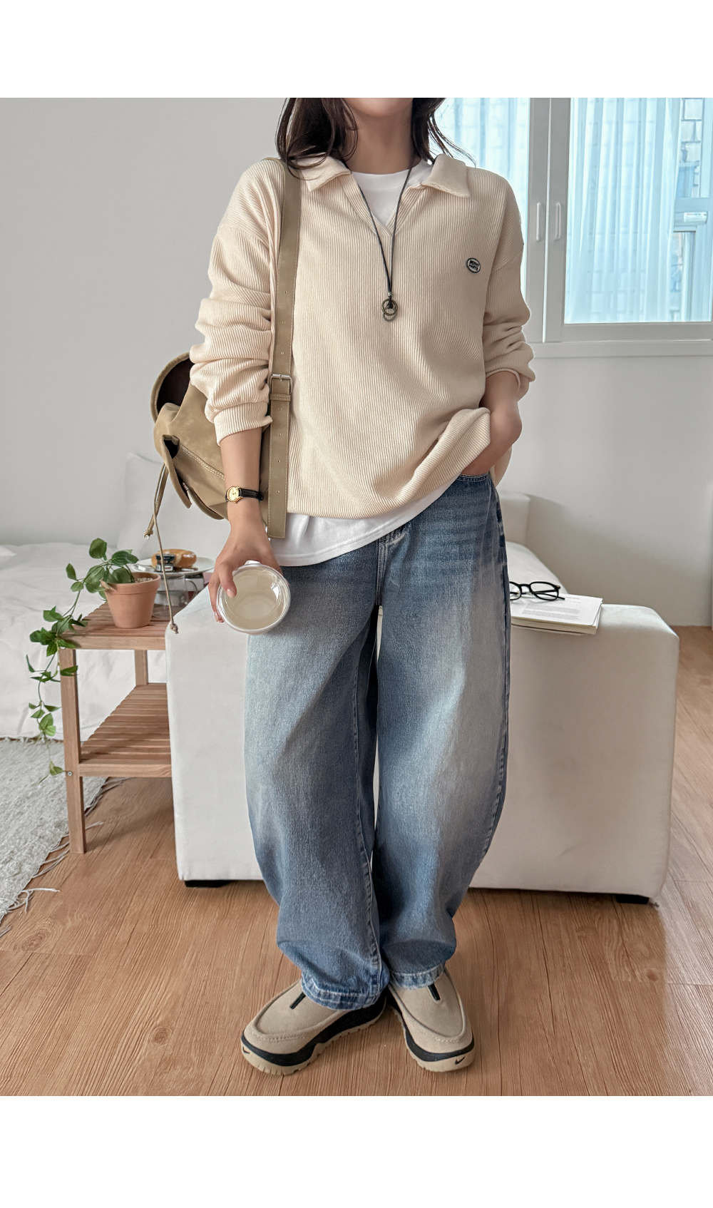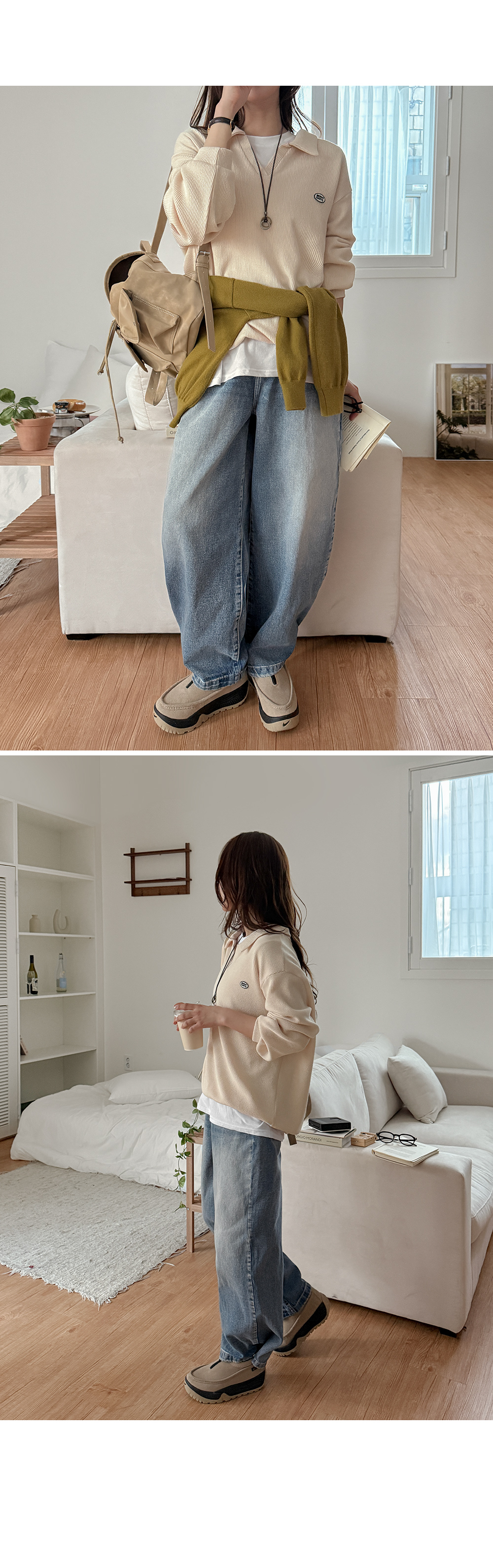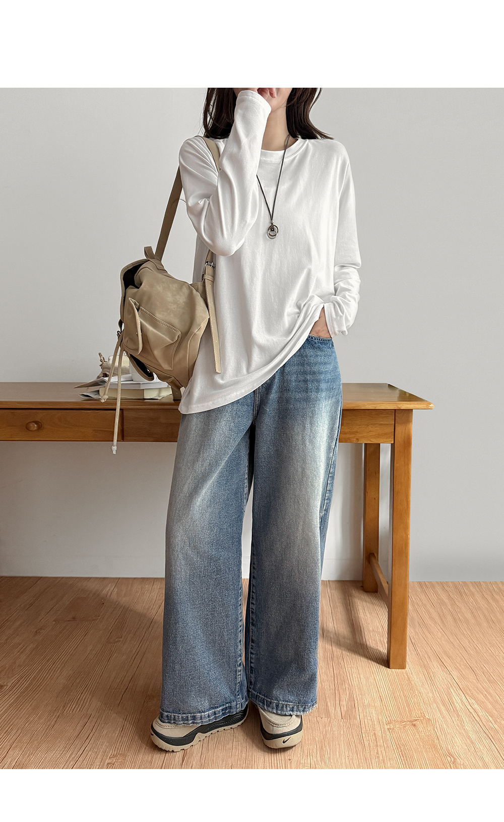 [3가지기장] 시카드 속밴딩 2way ワイド デニム パンツ 86255