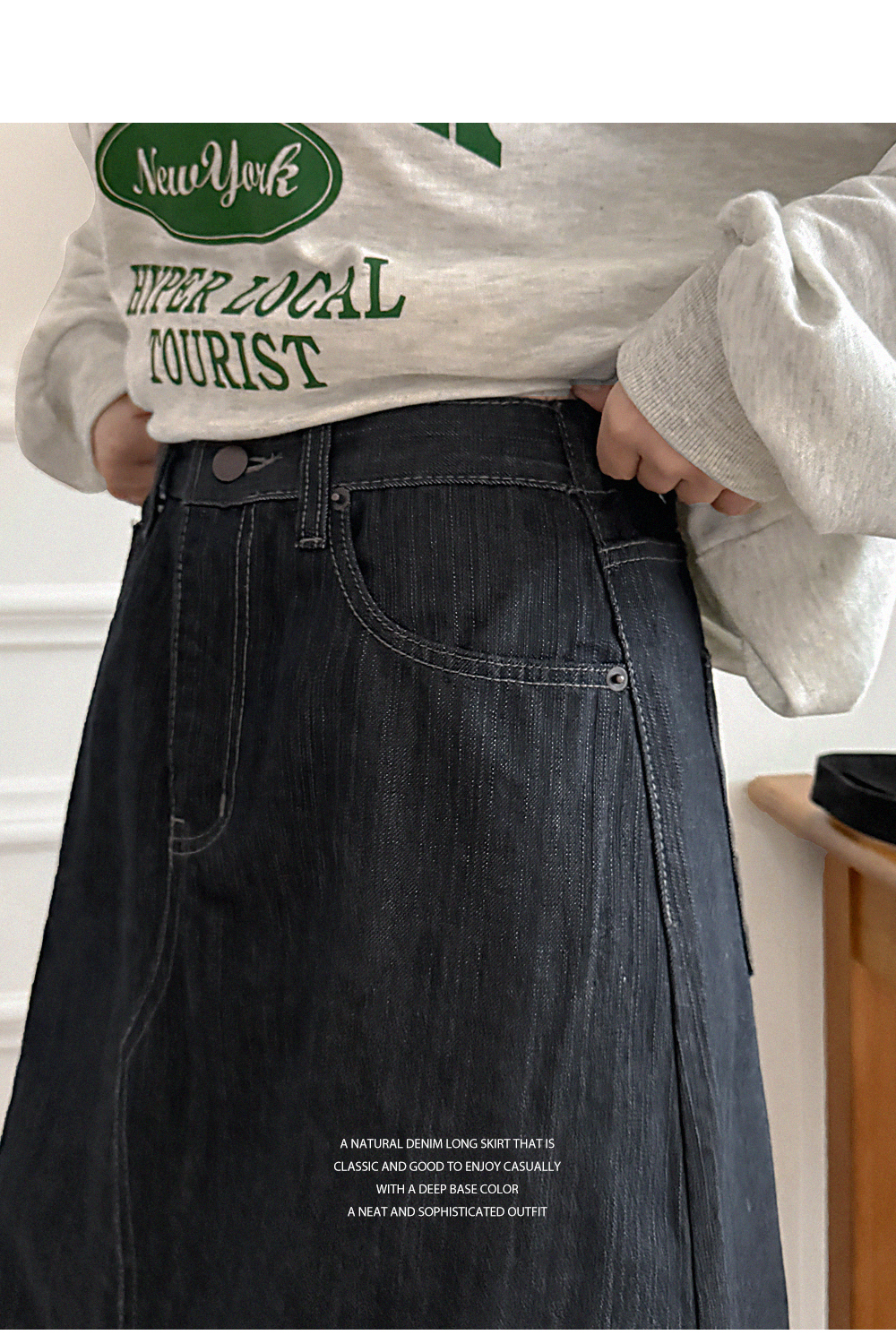 - 딥한 생지 컬러로 깔끔하고 세련된 아웃핏