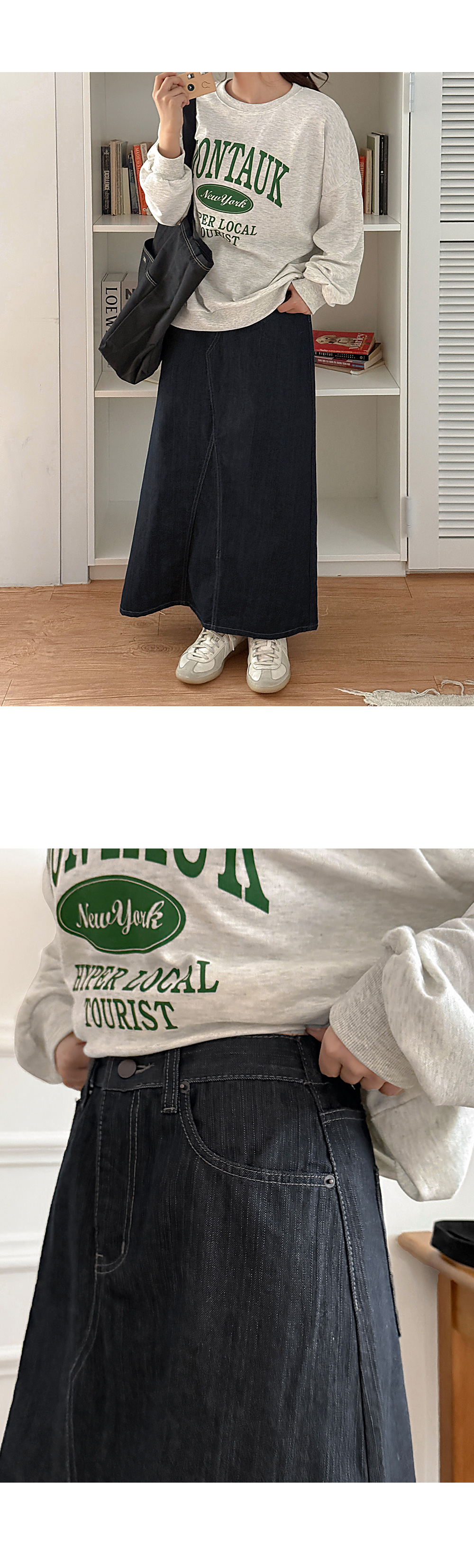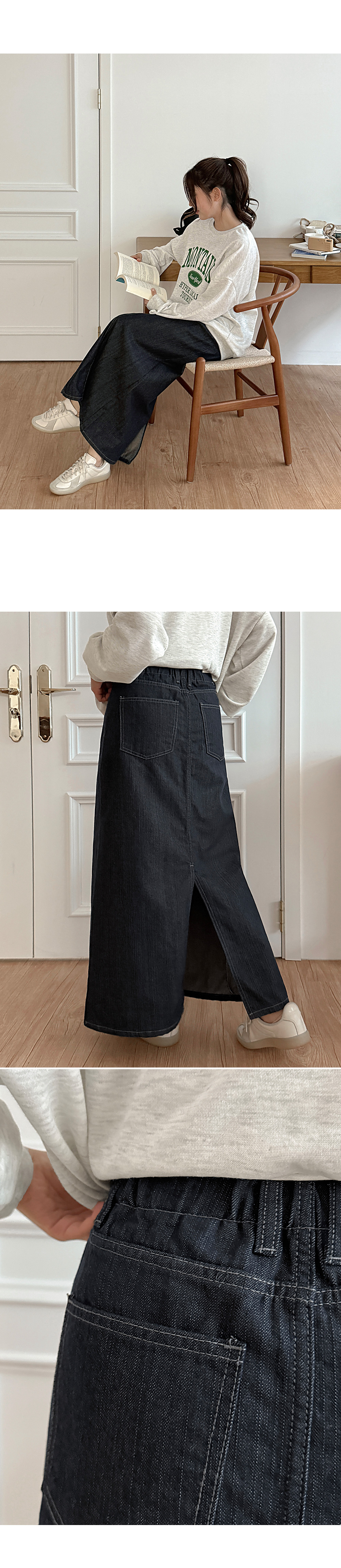 A-line denim long skirt