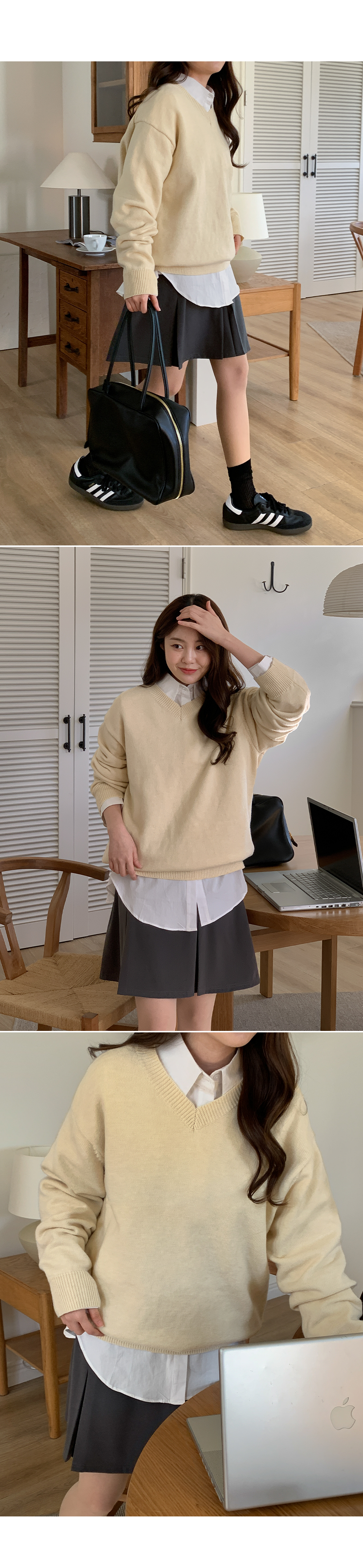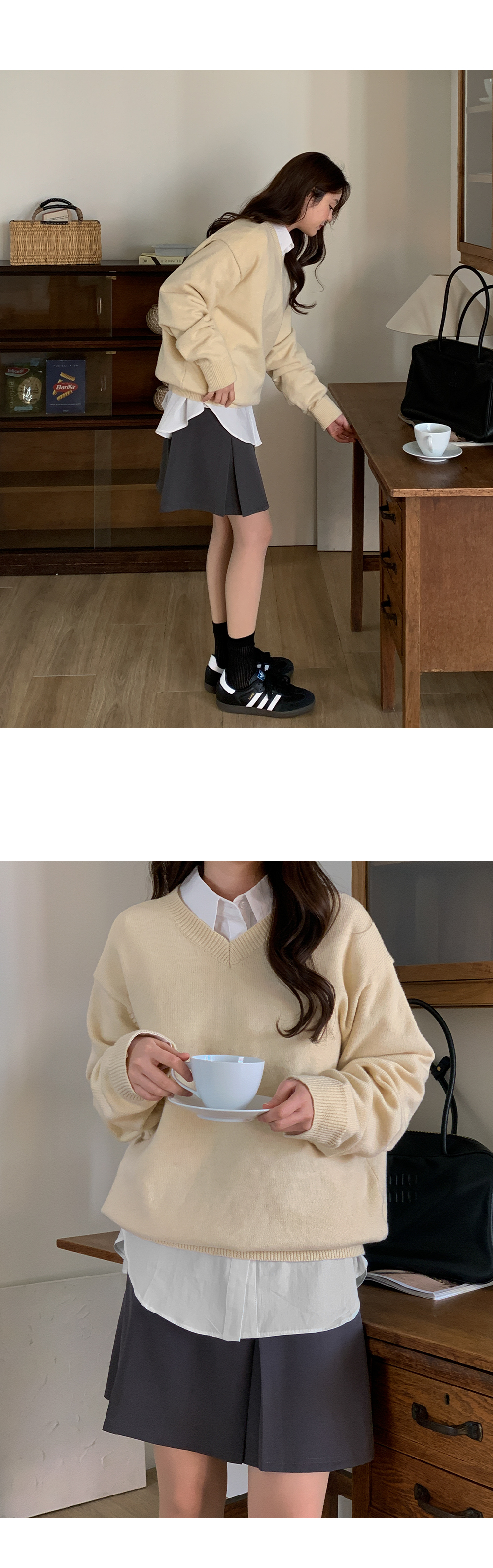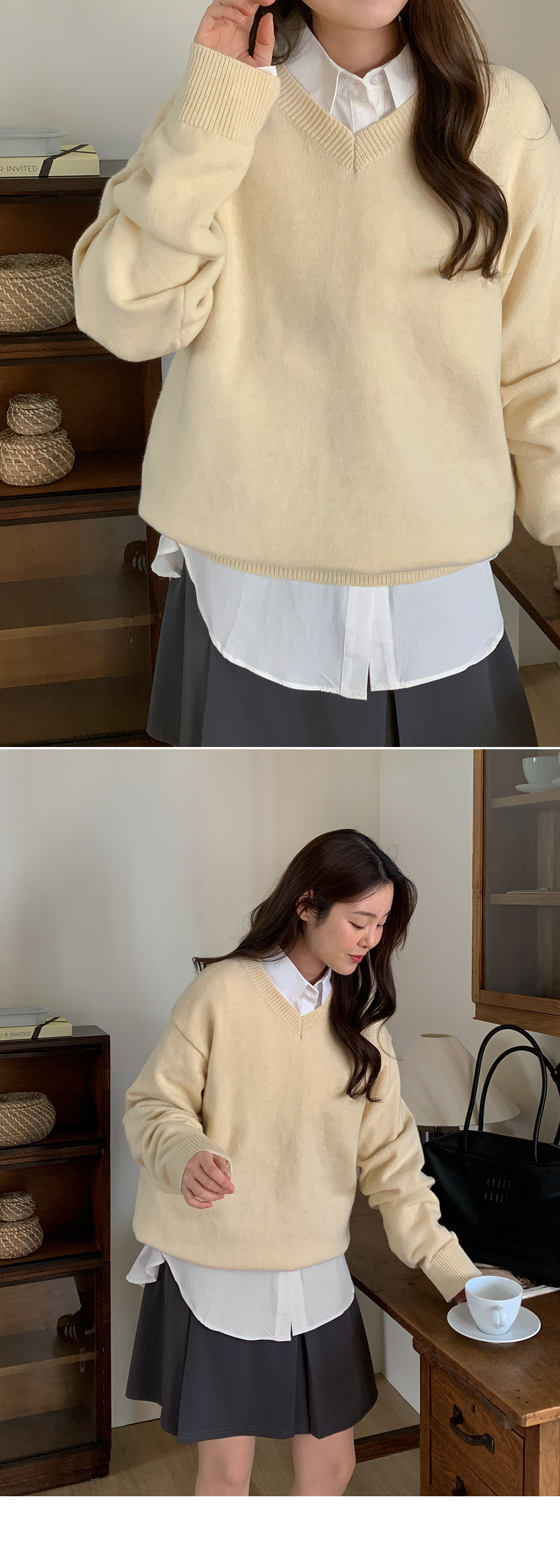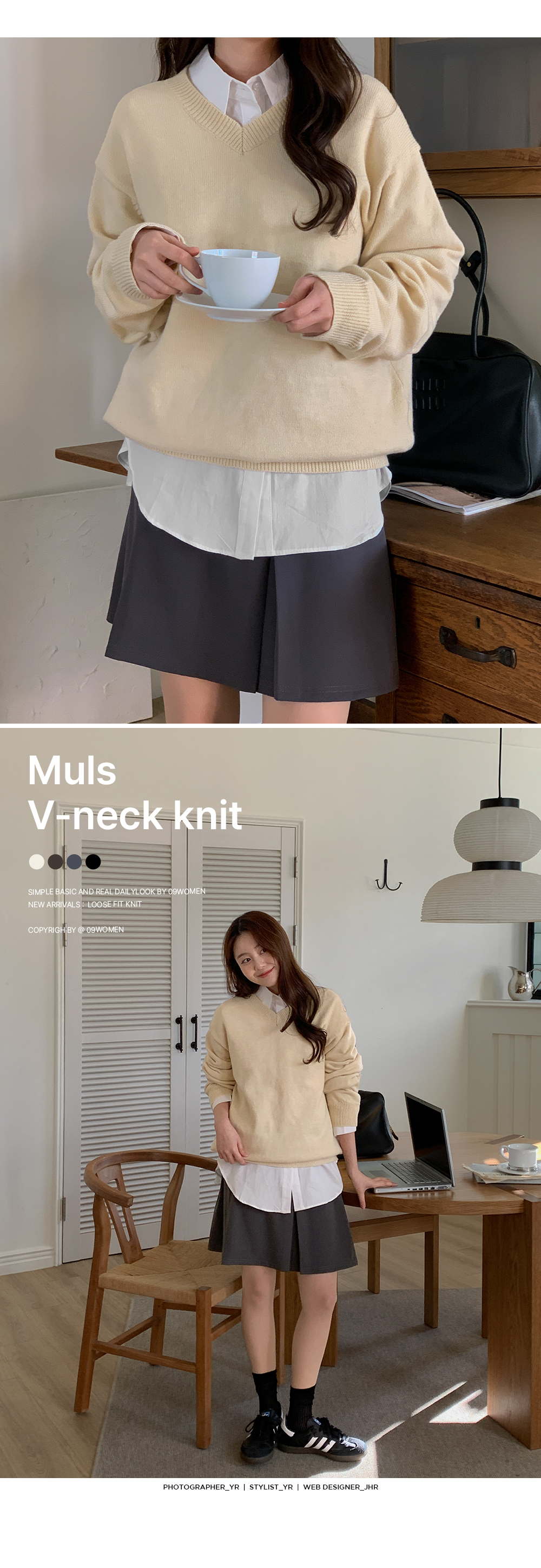 - 군더더기없이 깔끔한 기본 브이넥 니트
