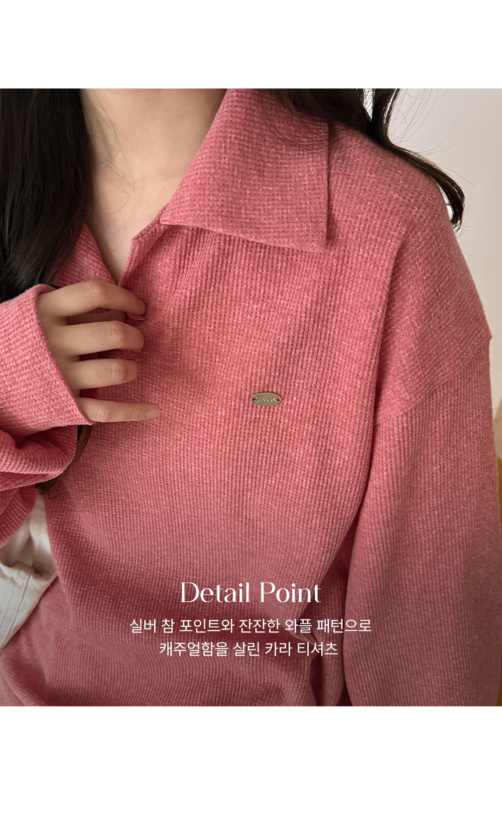 - 베이직한 카라 디테일에 실버 참 포인트 더한 디자인