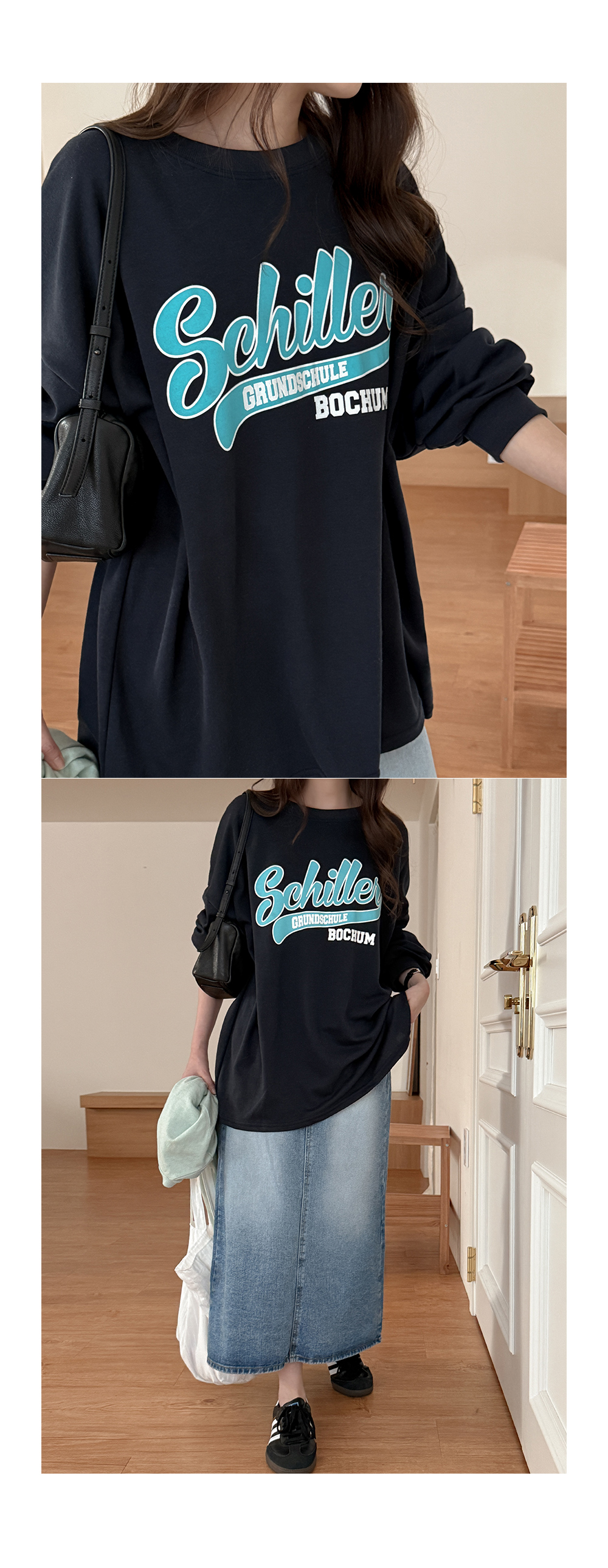 쉴러 말랑 ラウンド 레터링 スウェット ティーシャツ 86214