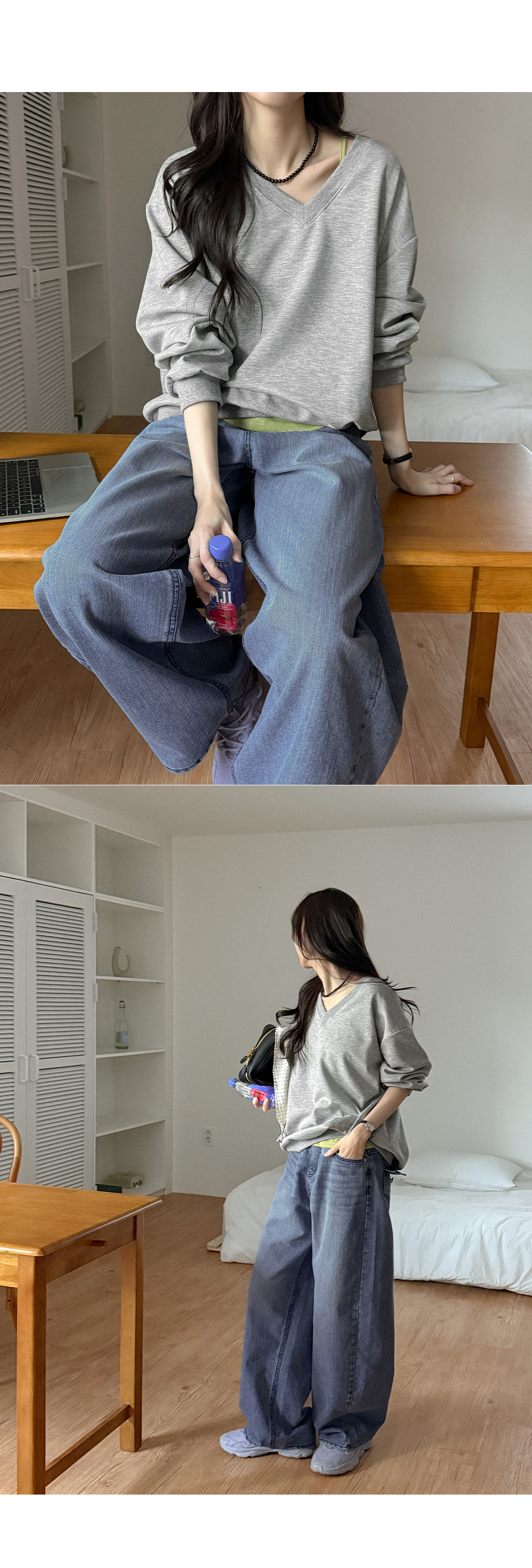- 부담 없이 즐기기 좋은 브이넥 디자인