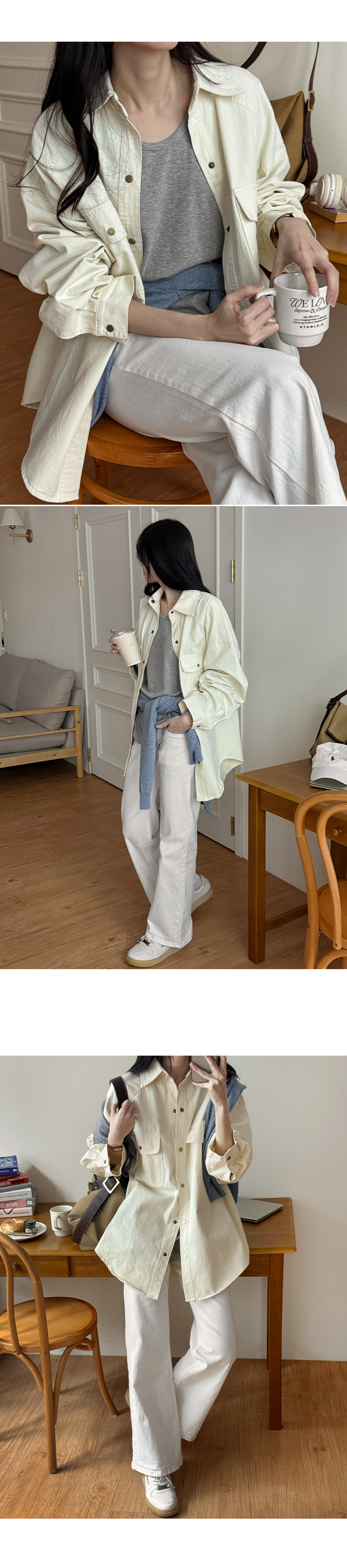 [09초이스][간절기템] 매일소장해 ウォッシュ ルーズフィット 刺繍 カラー 셔츠자켓 86335