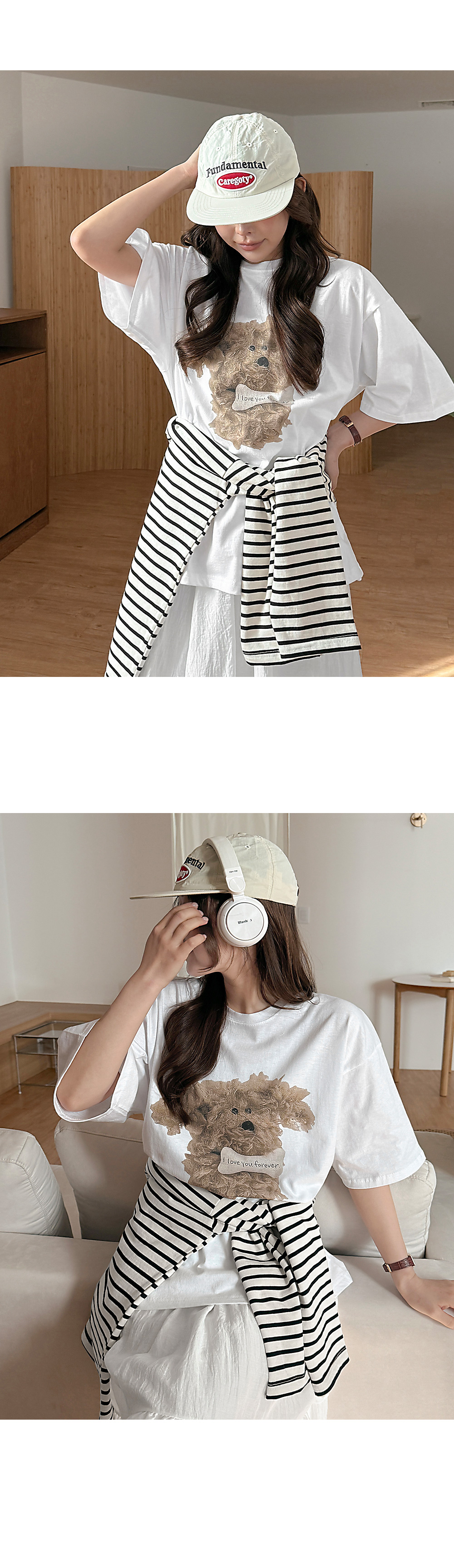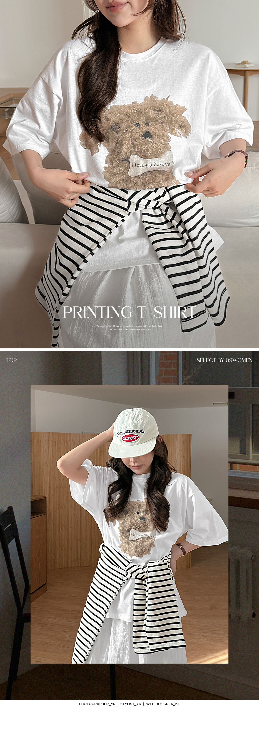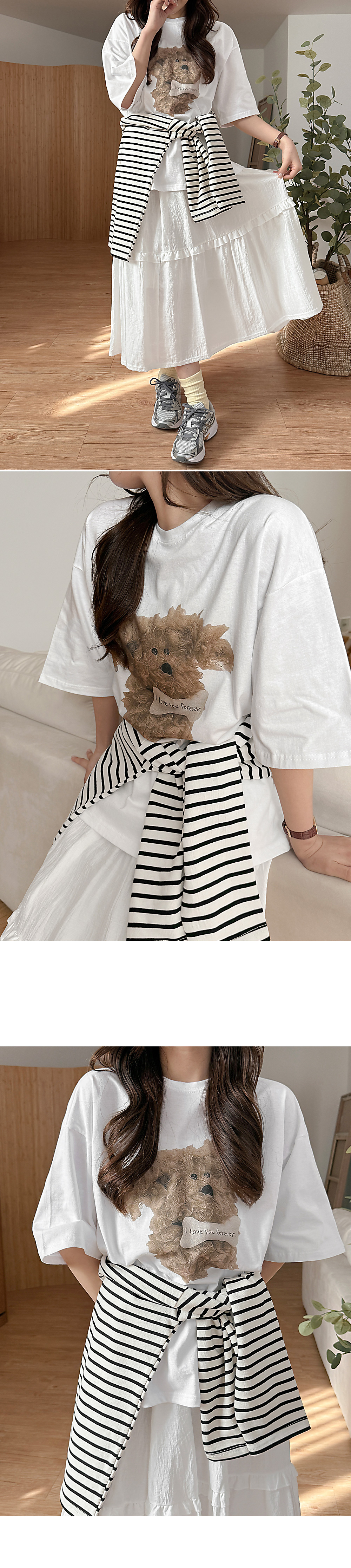 - 귀여운 강아지 프린팅이 돋보이는 반팔 티셔츠
