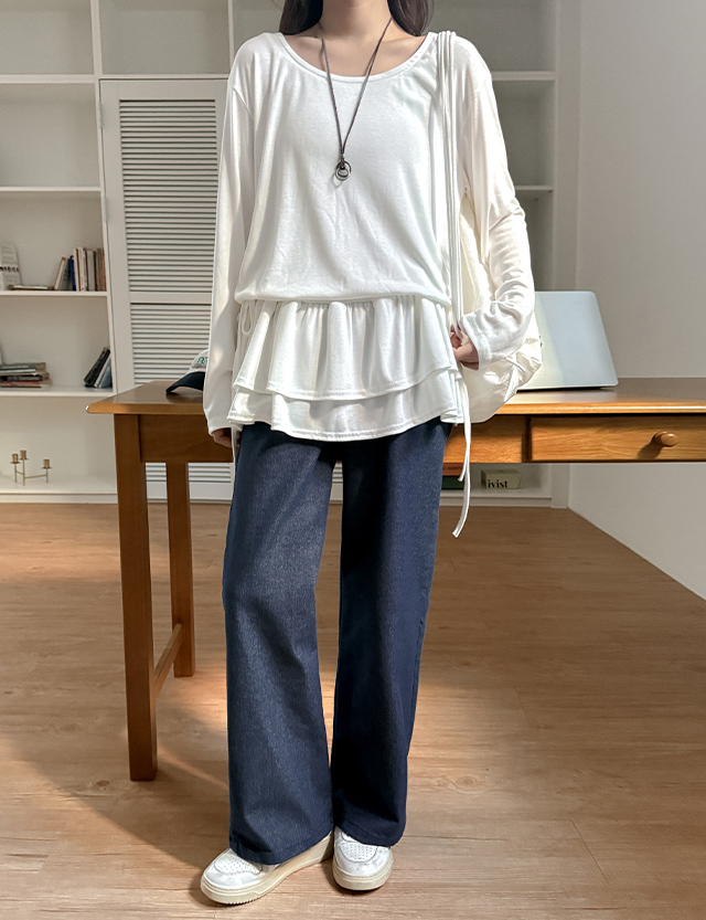 - 밑단 프릴 디자인으로 자연스러운 체형 커버